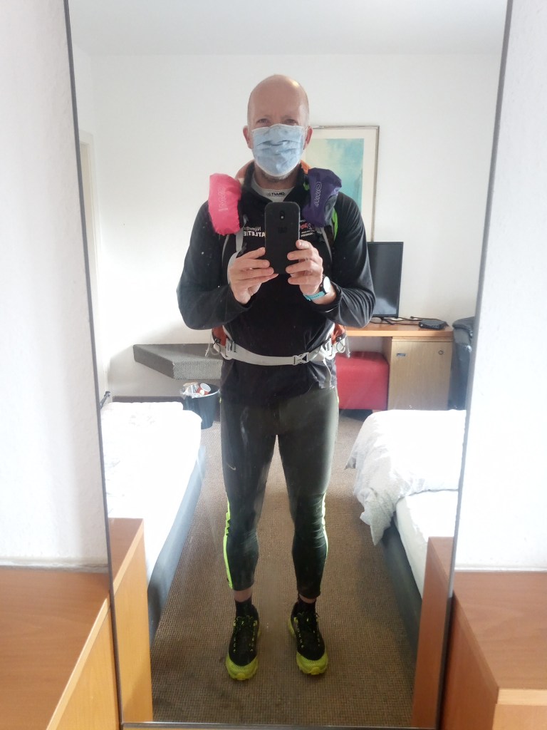 Wat resteert is het gevoel dat ik steeds sterker word. Mijn enige dips waren toen ik niet kon lopen door kapotte telefoon of simkaart. Tegelijk zeg ik: 71k lijkt veel maar het is de Nijmeegse vierdaagse en je mag erbij rennen. Als je maar genoeg uren op je poten staat, kom je verder. Heel verheven is het allemaal niet sprak de pelgrim nuchter. Ofwel: Just do it!, zoals een van de inspiratiekaartje van trailpapa en -mama Cor en Geraldine zegt.