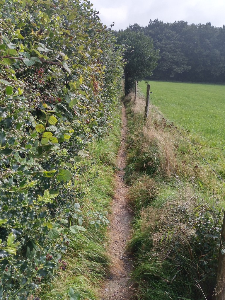 In de vroege ochtend een heerlijke lieve oude dame op mijn pad. Ze marcheert door het bos, 86 jaar jong. Ik zeg haar lachend dat ze de eerste in 500k is met stokken. Ze ontdooit meteen: Dank aan God dat er nog geen rollator, rolstoel of ander karretje is, hoezee aan de stokken! We babbelen en nemen intiem afscheid. Ik kan er uren op door.