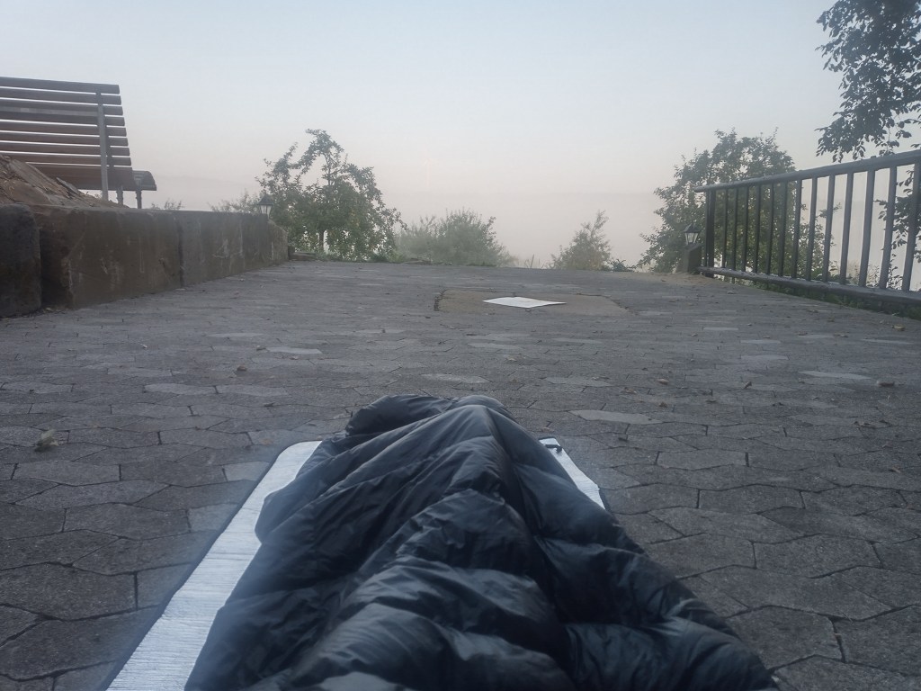 De eerste wildkampeerpkaats is een idylle. Deze plek brengt twee dingen. In de eerste plaats stilte, in de tweede plaats dankbaarheid. Stokbrood met guacamole-dip in het avondlicht. Slapen op een stenen plateau voor een Grillhutte met uitzicht op een appelboomgaard. De pelgrim komt met weinig, laat niets achter.
