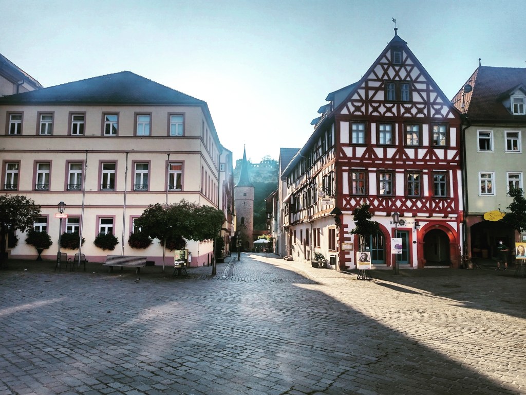 Na een puddingbroodje wordt het ros bestegen. De kontbenen of -botten, zo je wilt, zijn beurs als geplette druiven. Note to self: nooit honderden kilometers fietsen zonder spons.Dit gaat een lange dag worden. Enige krachttermen ontstijgen de pelgrim. De benen zijn als gellypuddy, ze weigeren dienst. Met een slakkengang naar Herbstein. De eerste passant legt uit dat hier op dit tijdstip nergens koffie te krijgen is. Honderd meter verderop drink ik Milchkaffee bij de Tankstelle.