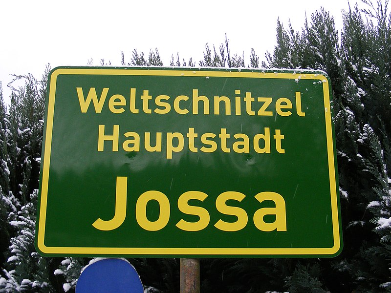 Op 70 kilometer een korte break in Jossa, Weltschnitzelhauptstadt. Hier werd ooit een 100 jarig jubileumfeest gevierd met een Schnitzel van 100 meter. Het verklaart de aanwezigheid wellicht van de honderden motorrijders. In bochten gaan ze plat op de zijkant om me heen. Dit is motorterritory.