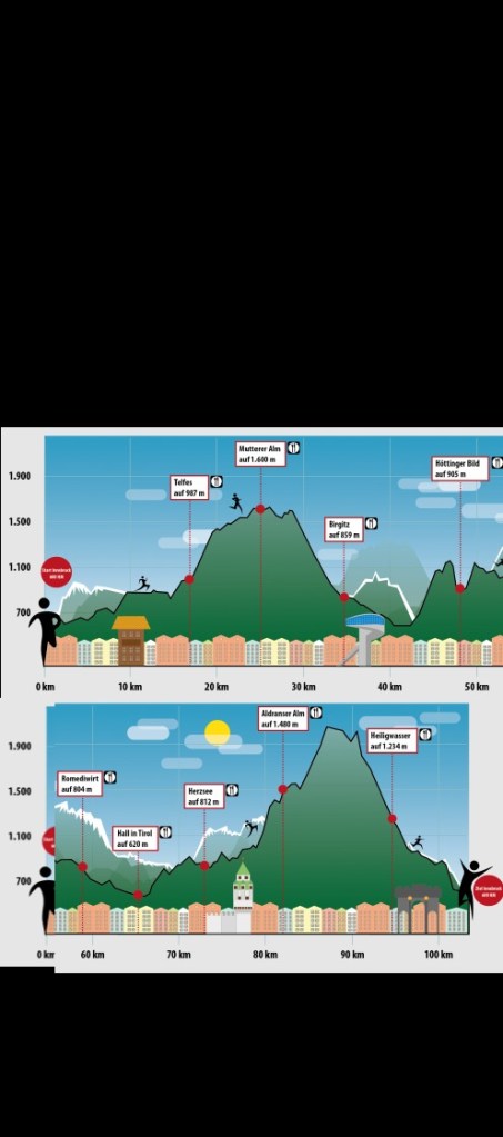 10 september. Dag 25. Innsbruck 0k. Totaal 1.275k.