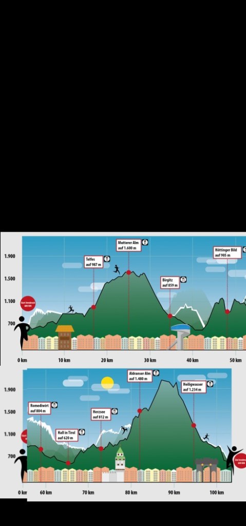 Raceday. Een hangdag aangezien Bram en ik om 23.00 uur starten. Na de koffie de stad in om een pet te kopen. Het is zo moordend heet dat een mutsje niet meer te doen is. Helaas zijn alle petten in Innsbruck hip en duurder dan 30 eur. Dan maar met mijn buff op het hoofd .