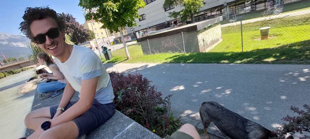 Ik liep eerder al eens de Zes uur van Stein in drie uur toen de race werd afgekapt wegens storm en vallende takken. Hier liep ik in 2017 de K85 in 65 kilometer toen alle stoere stukken werden gecancelled vanwege sneeuw en lawinegevaar. Dat was in mei en zal nu niet gaan gebeuren. Wel gaat het regenen. Gezien de gruwelijke hitte vinden we dat prima. Alhoewel, Leander toont de buienradar en het begint meer op een zwemwedstrijd te lijken. Leander merkt tevens op dat het mijn reguliere dagafstand is net een pauze, en dan nog een klein stukje verder. Lol.