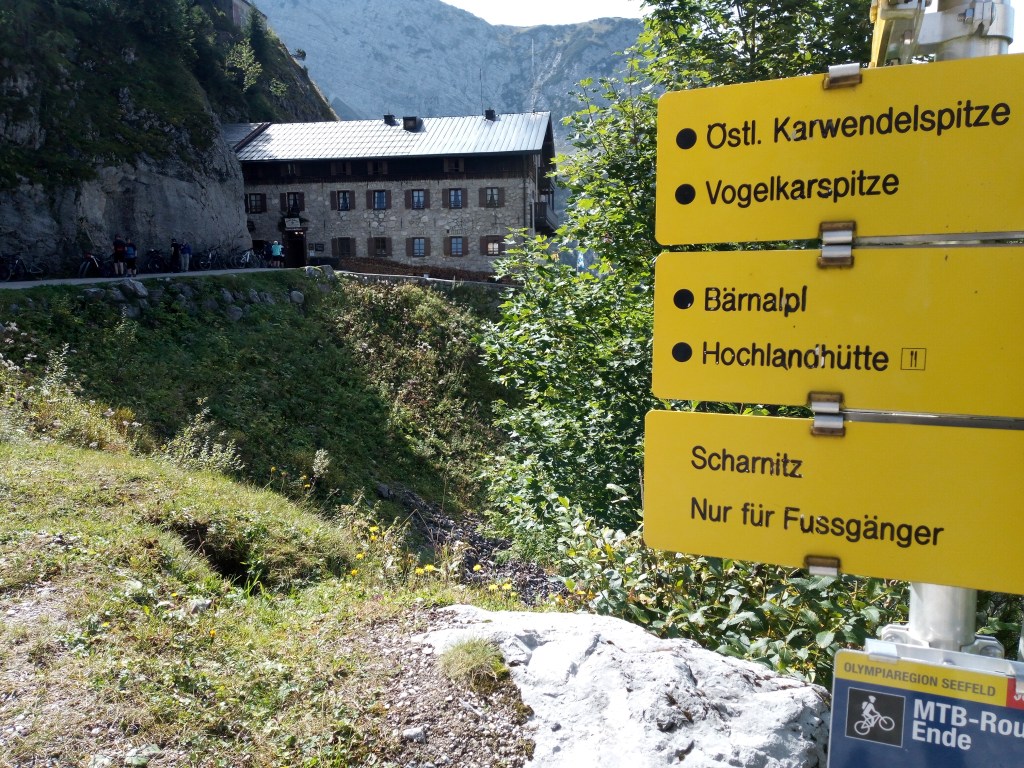 Deze etappe gaat bijzonder snel en voor ik het weet zit ik in het Karwendelhaus aan een Germknodel met vanillesaus om de koolhydraten aan te vullen. Ruim 22k op de teller en een gezellig gesprek met een jong stel; de enigen die omhoog fietsen zonder accu.