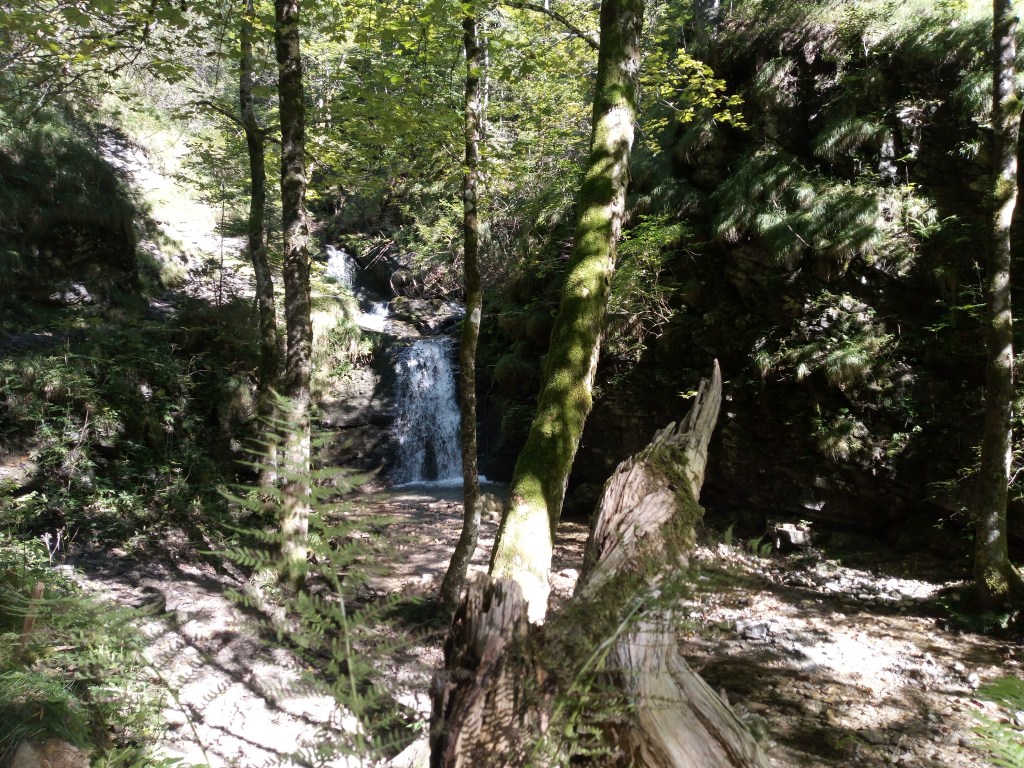 Ik tref een bijzonder technisch paadje dat snel naar beneden leidt door een steile kloof met watervallen en steile afgronden. Overal kabels om je te zekeren, kan geen kwaad met toeristen, dit soort paadjes vind je meestal in het hooggebergte.