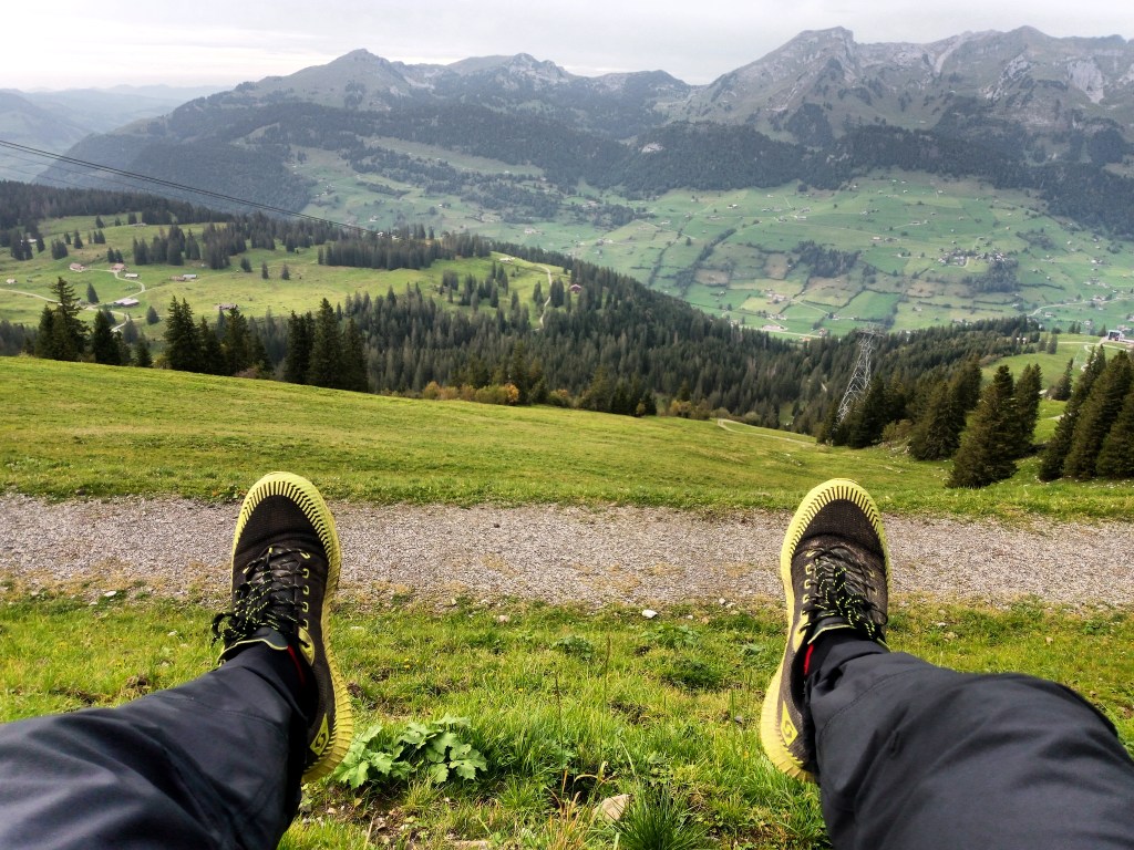 Licht euforisch pak ik de gondel omhoog om nog een topje te pakken. Dat lukt uiteindelijk niet maar ik drink een pak jus en luister mijn iPod bij Gasthof Stofeli. Wat zijn de bergen toch mooi! Een uur lang alleen maar kijken, opzuigen, absorberen.