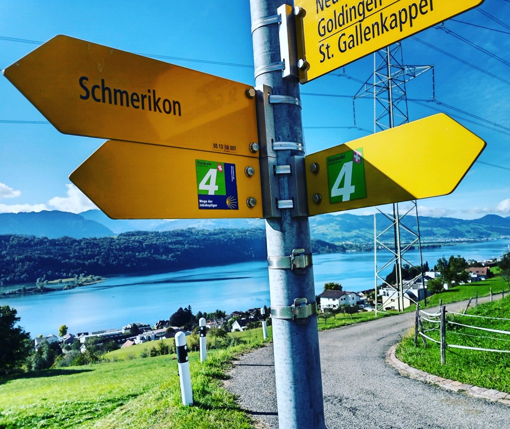 Na een karig ontbijt bij mijn boerenfamilie ga ik goedgemutst op pad. Gisteren was vanaf de topjes die ik beklom de Zurichsee te zien met – what is in a name – aan het einde de stad Zurich. Vandaag wil ik om de punt van de plas heen en aan de andere kant de pas op. Zo geschiedde.