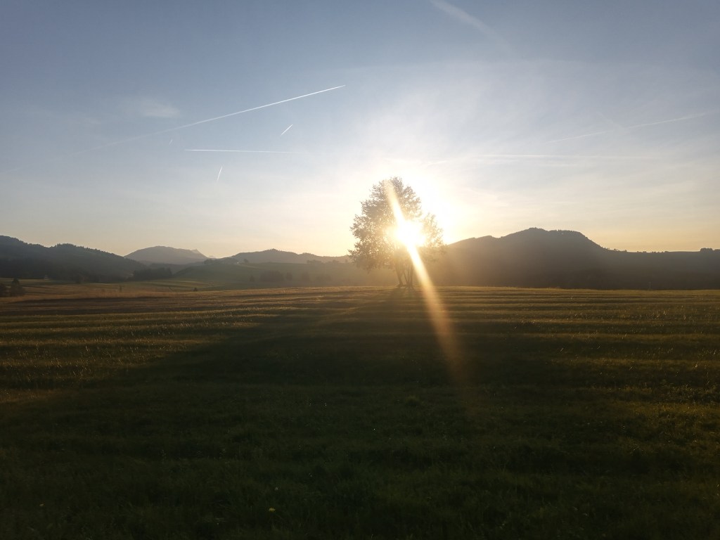De dag eindigt op een hoogvlakte. Vannacht was er regen en dat heeft zich op de omringende hoge toppen afgezet als sneeuw. De zon hangt laag en werpt lange schaduwen. Er hangt een serene stilte over de weilanden. Een tractor haalt me in, zoon lief aan het stuur, oma achterop de treeplank zwaaiend naar mij.