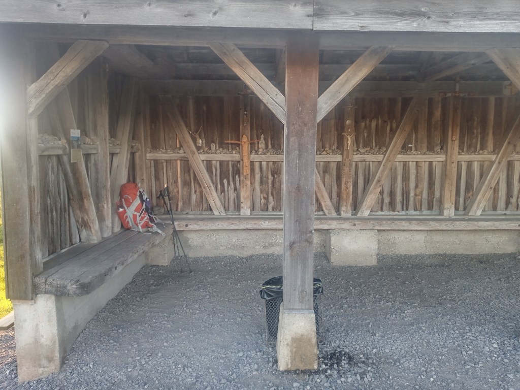 Ik zoek al een tijd naar een droog onderkomen zodat ik de tent niet hoef op te zetten. Dan is daar een kleine schuilhut je midden op de hoogvlakte. Weer exact op het juiste moment, de wet van de aantrekking. Rondom banken zodat ik van de grond slaap. Gelukkig ben ik niet de enige, overal kolossale spinnenwebben.