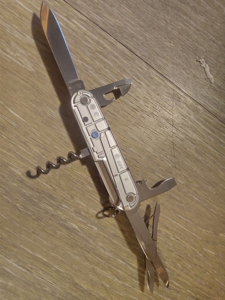 1. Rode kapjes van het Victorinoxmes afgehaald vanwege gewicht?