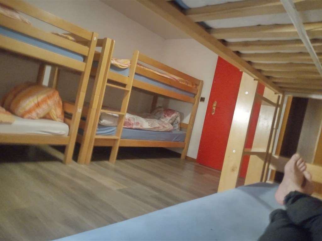 Aldus boek ik een bed in de Jungfrau Residence een chalet voor arme aalmoezeniers. Ik betaal online 36,50 en moet op locatie nog 3,60 betalen. De vriendelijker kerel wuift het weg. Ik krijg een kamer met drie stapelbedden vooralsnog voor mijzelf.