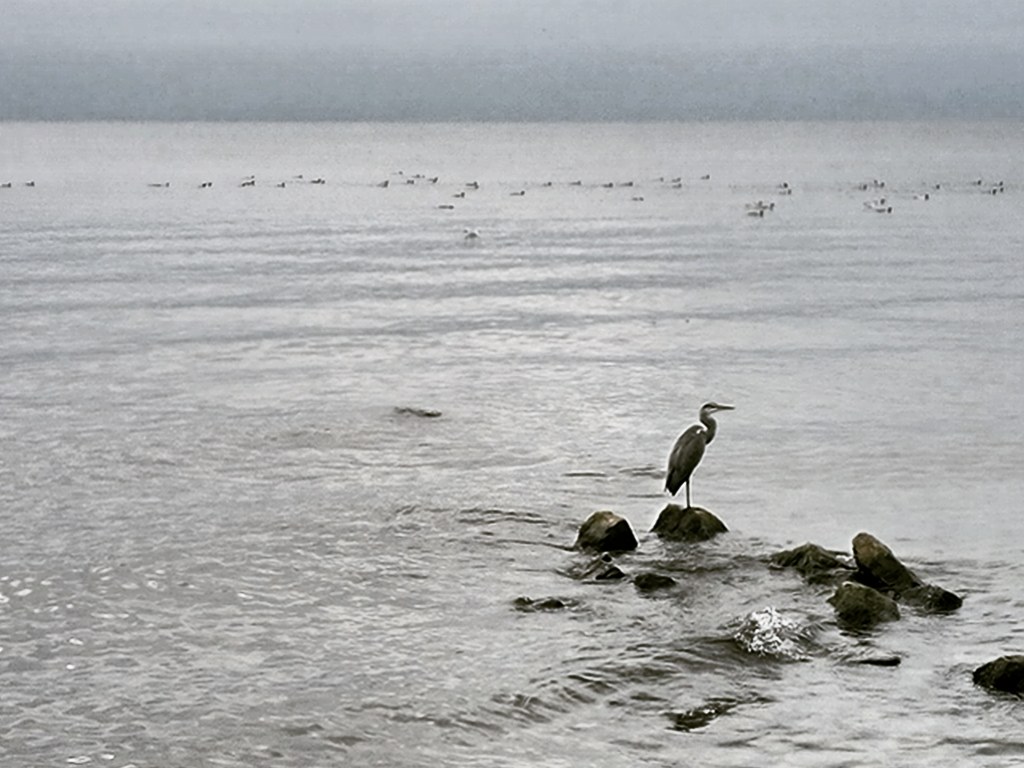 In plaats van uit de kust een heerlijk single trackje door het bos. Het meandert langs een beekje. Het beekje wordt breder. Het gaat ook wat harder stromen. Het wordt eigenlijk een wild stromende rivier. Samen met mij stopt hij bij… het meer. Ik heb me vastgelopen in een delta en sta op een oever en ik moet op de andere oever zijn.