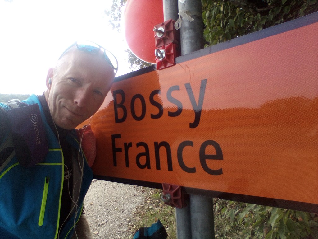 In de laatste tien kilometer een stuk door Frankrijk. Een bijzonder moment: het zesde land dat ik aantik en vandaag becijferd dat het echt precies op de helft van de route is.