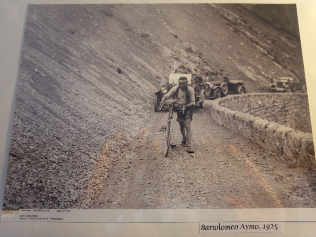 Ik eindig mijn dag met warme chocolademelk in een pizzeria bij mijn pension. Mooie oude foto’s aan de muur van heroïsche wielrenners die de col d’Izoard aanvallen zoals Bartolomeo Aymo in 1925. Saillant detail: hij loopt naast zijn fiets met drie oldtimers achter zich aan. Ik houd ervan. Ondertussen stuur ik e-mails naar de vijf duurste hotels in Monaco on gesponsord te worden als ik daar over een week aankom.