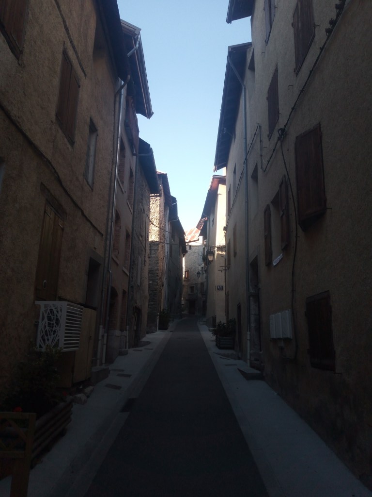 De begroeiing is anders, groener hier. Guillestre ligt in een doorlopend dal naar Nice. De wind blaast het altijd schoon en dat maakt dit het dal met de meeste zonuren van Frankrijk. Dat is teveel luxe voor deze pelgrim. Al een maand vrijwel geen regen, op een nachtje na. Toen Brenda vetrok zou ik vier dagen regen krijgen, dat eerder er drie, twee, een en uiteindelijk is er geen regen geweest en ook de voorspellingen zijn zon wat de klok slaat.