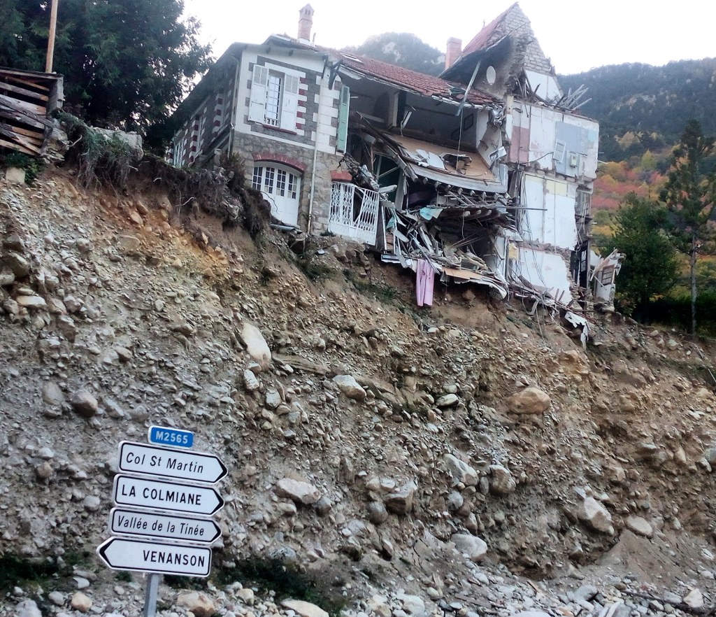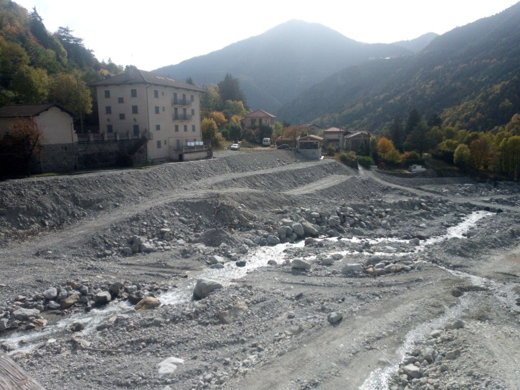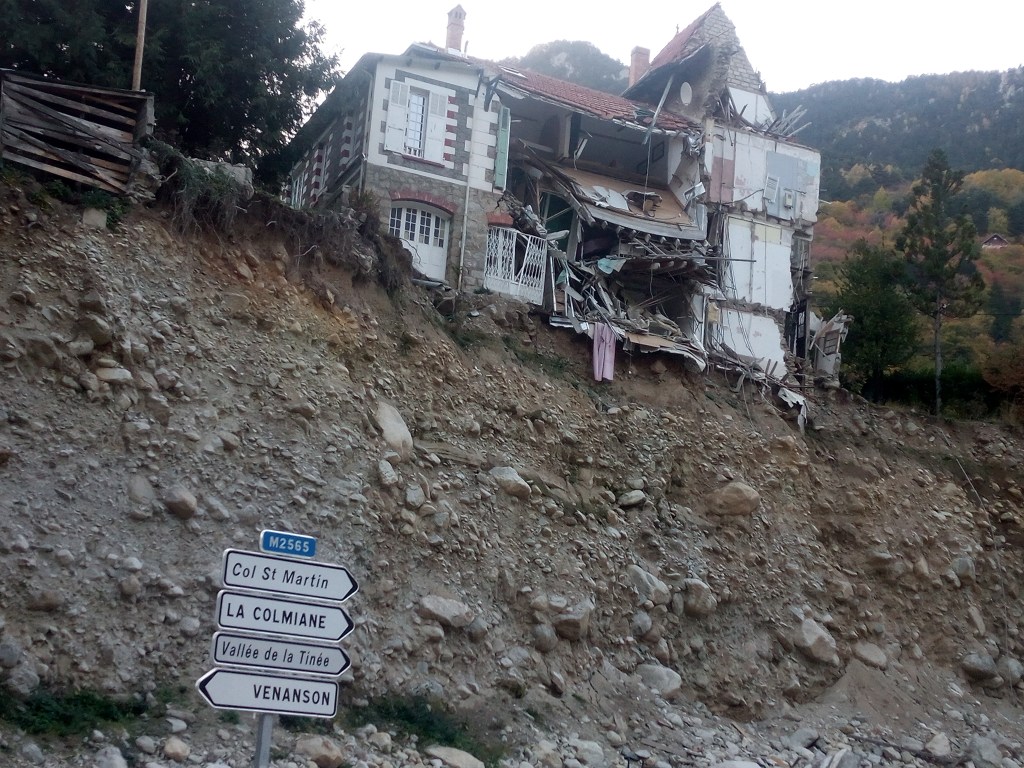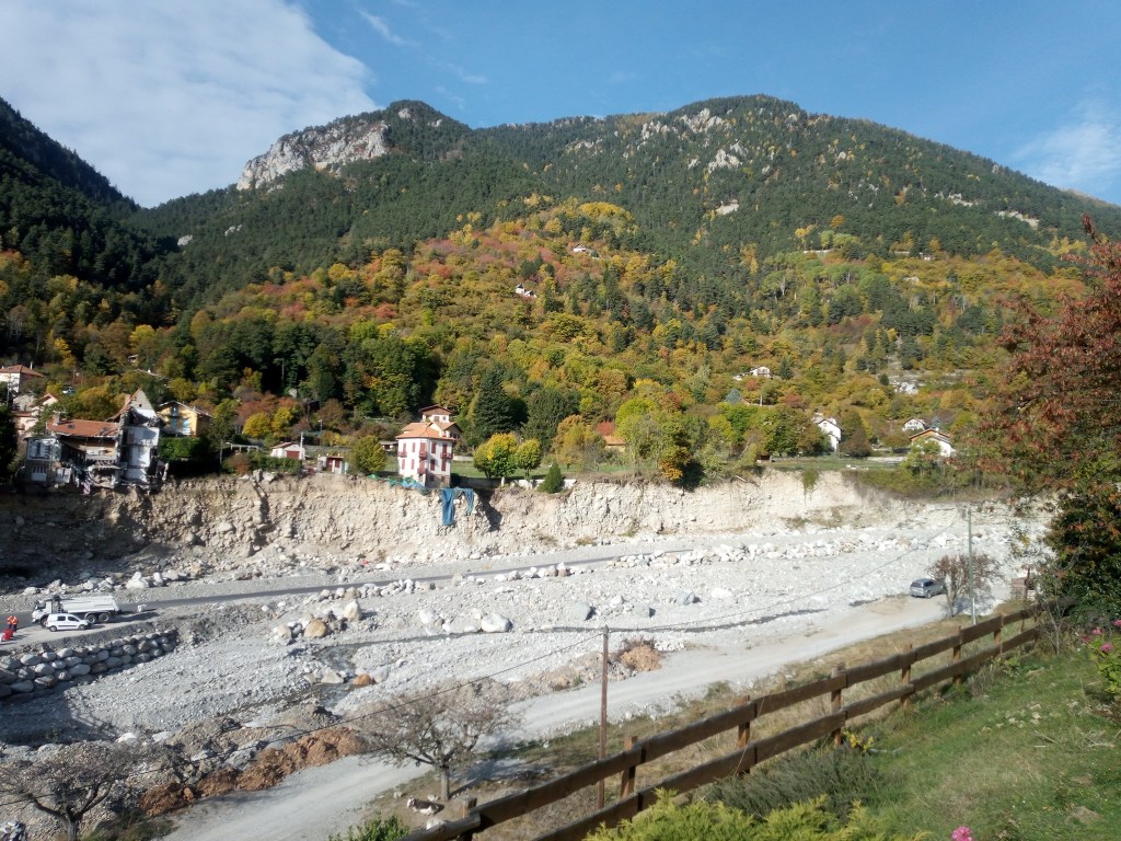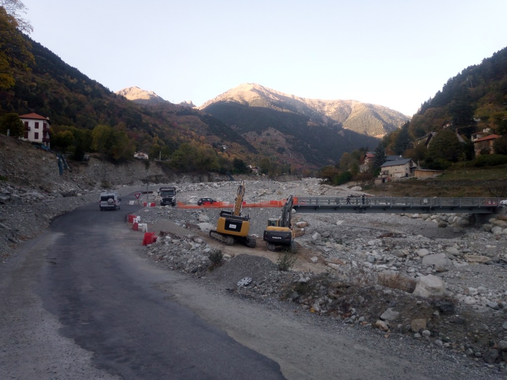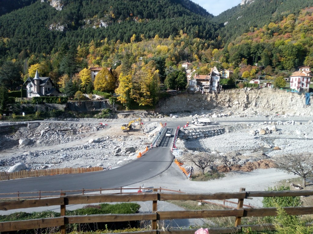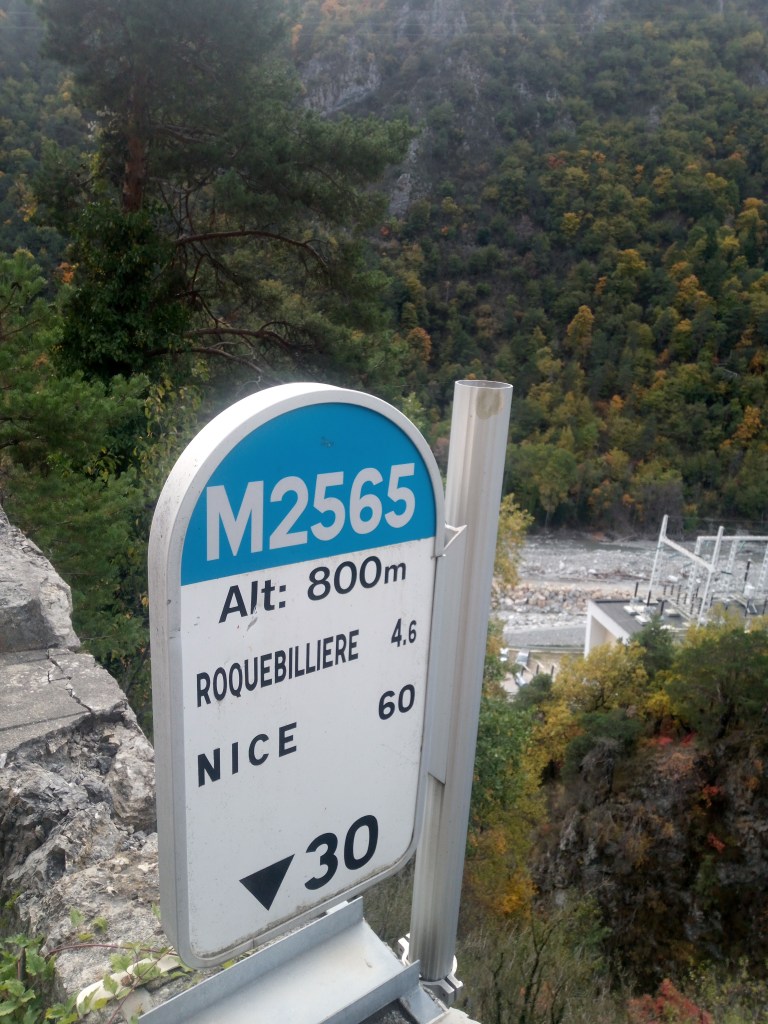 De eerste 15 kilometers volgen het dal naar beneden richting Nice. Rechts de hele dag de vallei waar trucks en kranen hun restauratiewerkzaamheden verrichten. De weg is te smal en er is geen fietspad of stoep dus het is de hele dag laveren en oppassen.