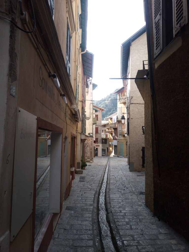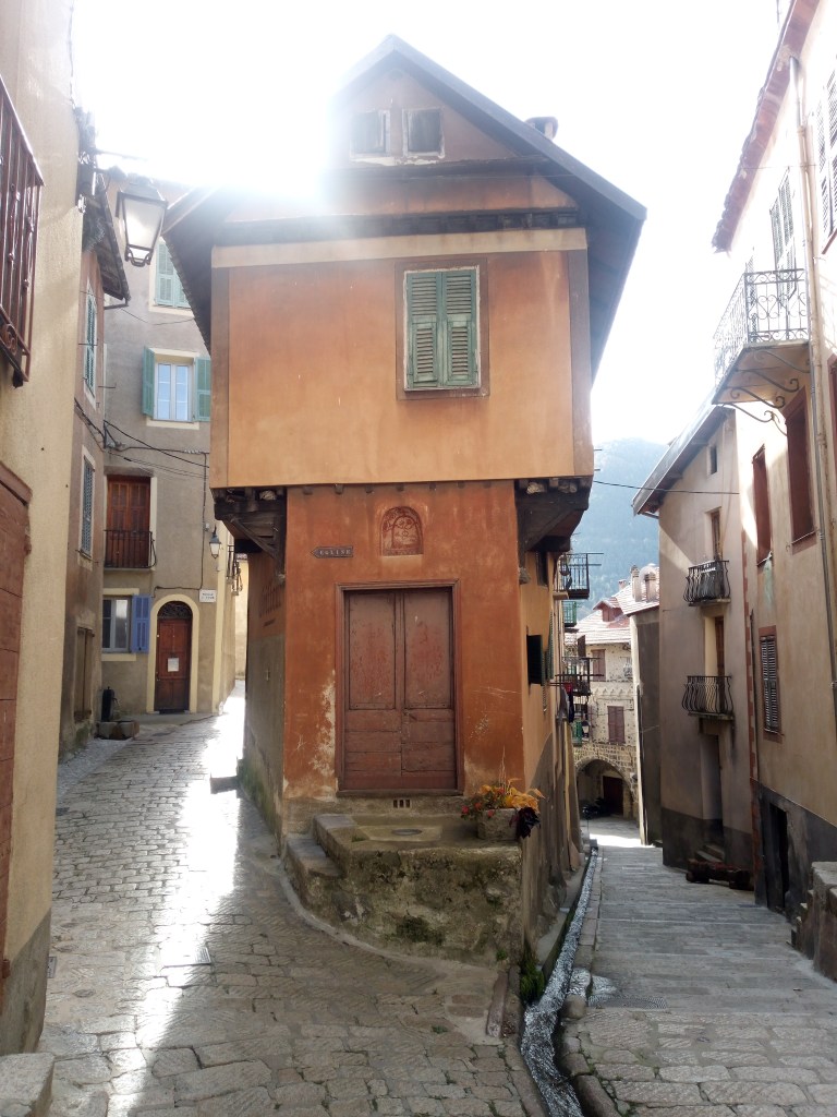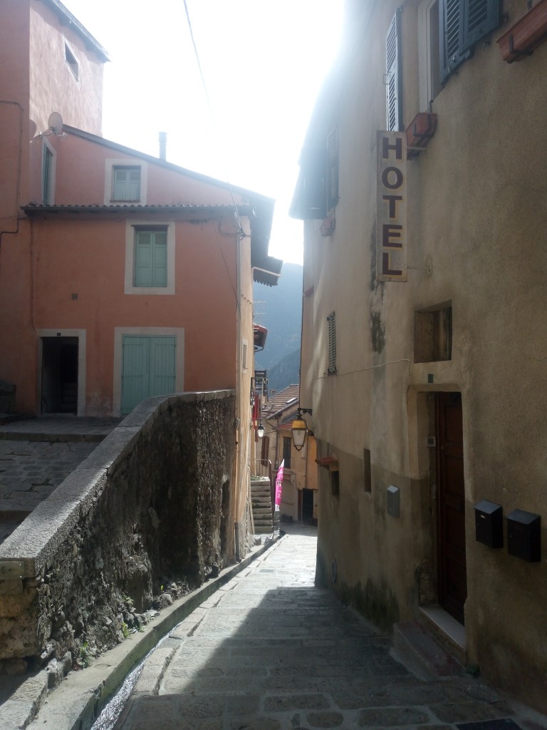 Na 15 kilometer mag ik links het dal uitklimmen, de col op. Ik passeer het prachtige stadje La Bollene Vesubie dat prachtig om een heuvel is gedrapeerd en over de vallei uitkijkt. Het ideaalbeeld dat je in je hoofd hebt van Toscaanse dorpen. De felgekleurde luiken aan de statige panden vervolmaken het beeld.