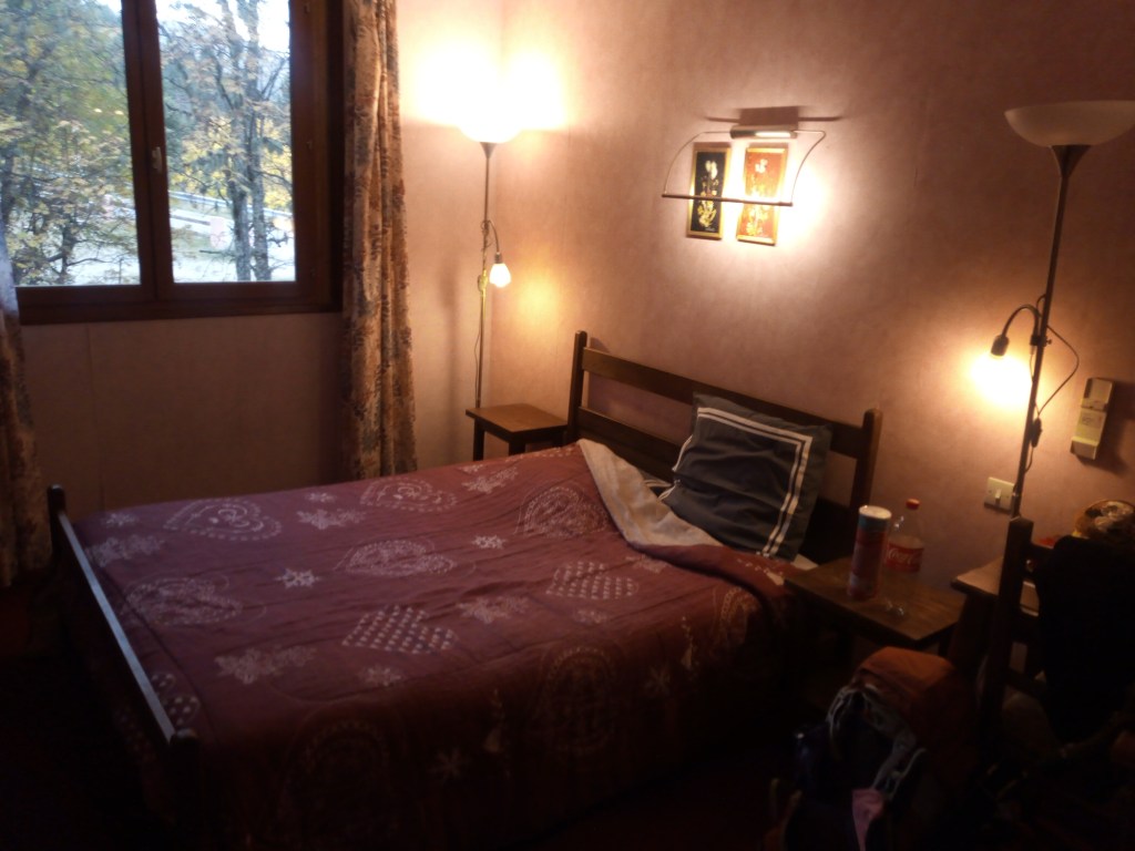 Hotel Chamois is er één uit duizenden. Alles is gedateerd. Overal posters van ralleys die hier zijn gehouden. Alles is donker, stoffig, viezig en bedompt. Als ik op het belletje druk gebeurt er minuten niks tot er een stoffige, oude man met catweazlebaard komt aansloffen. De receptie is een puinbak, het restaurant ook. De ramen zijn half afgeplakt en alles is donker en groezelig. Mijn reservering heeft ie niet gezien maar ik krijg kamer vijf op de eerste verdieping. De hal is donker, overal posters uit de jaren vijftig en ook mijn kamer is er een uit totaal vervlogen tijden. Ik ben in een Hitchcockfilm beland. Als ik vraag om de wificode waarschuwt hij me dat het ‘mountainwifi’ is en inderdaad laat hij wat gaten vallen.