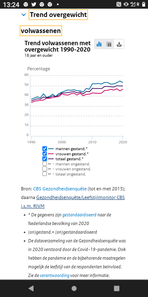 Blijkbaar zijn alle vaccins samen zo geweldig dat we met een vaccinatiegraad van 84 procent nog steeds eenzelfde druk op de IC ervaren en de tent moeten sluiten. Ondertussen is onze bevolking dikker, ongezonder en ongelukkiger geworden. De psychische problemen zijn met ongeveer vijf procent toegenomen. Ten opzichte van dertig jaar terug gaan we van 30 naar nu 50 en al snel 60 procent overgewicht. Abominabel, straks is twee op de drie Nederlanders te dik en er lijkt geen kentering te komen, eerder een versnelling door coronamaatregelen.
