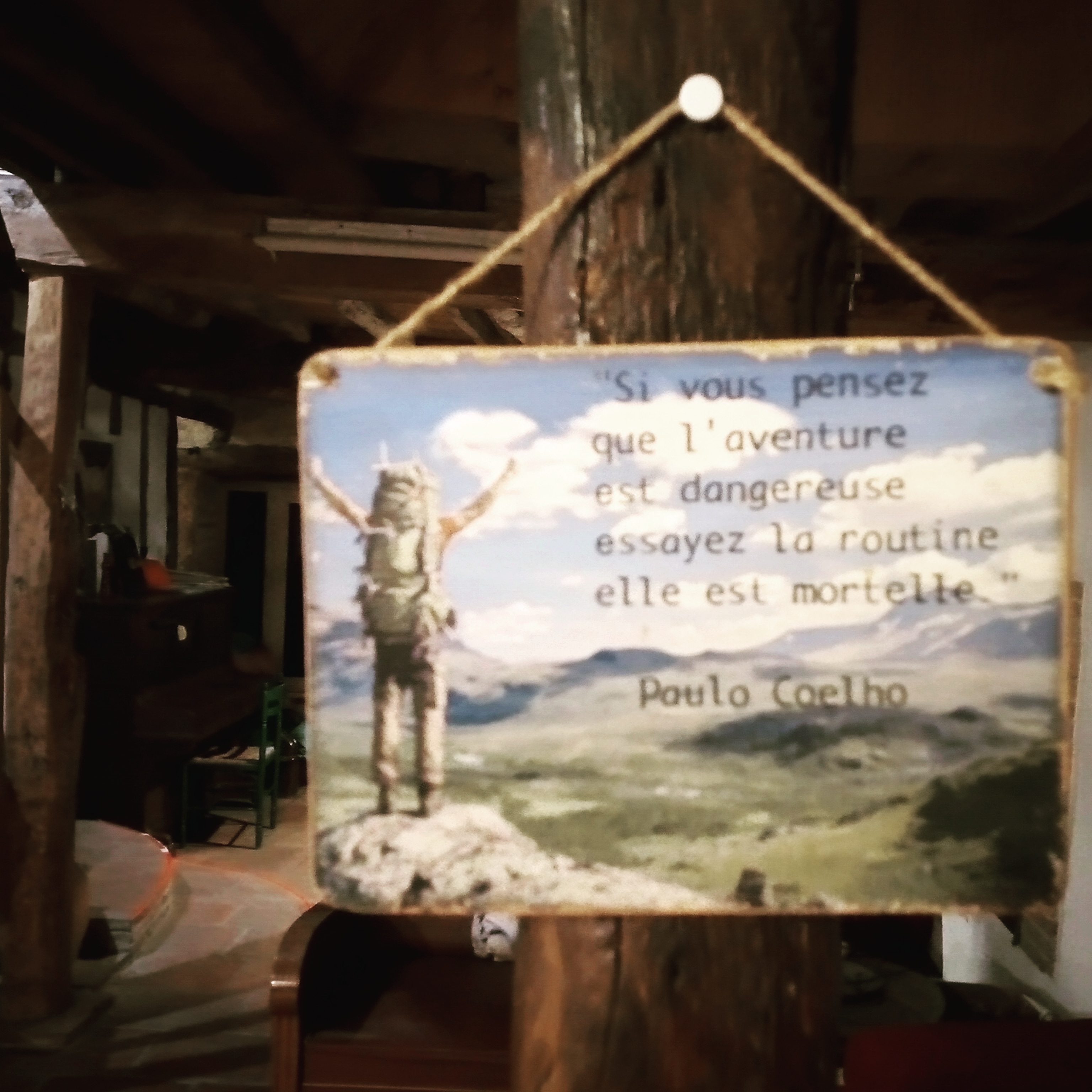 Dat gezegd hebbende, heb ik gisteren intuïtief meteen de fijnste gite in 100 dagen voor 13 euro nog een dag geboekt. Hoe bijzonder dat ik vervolgens een vrije dag voor een openhaard doorbreng, terwijl het de hele dag regent en koud is. Het moet zo zijn; de voorzienigheid is met mij.