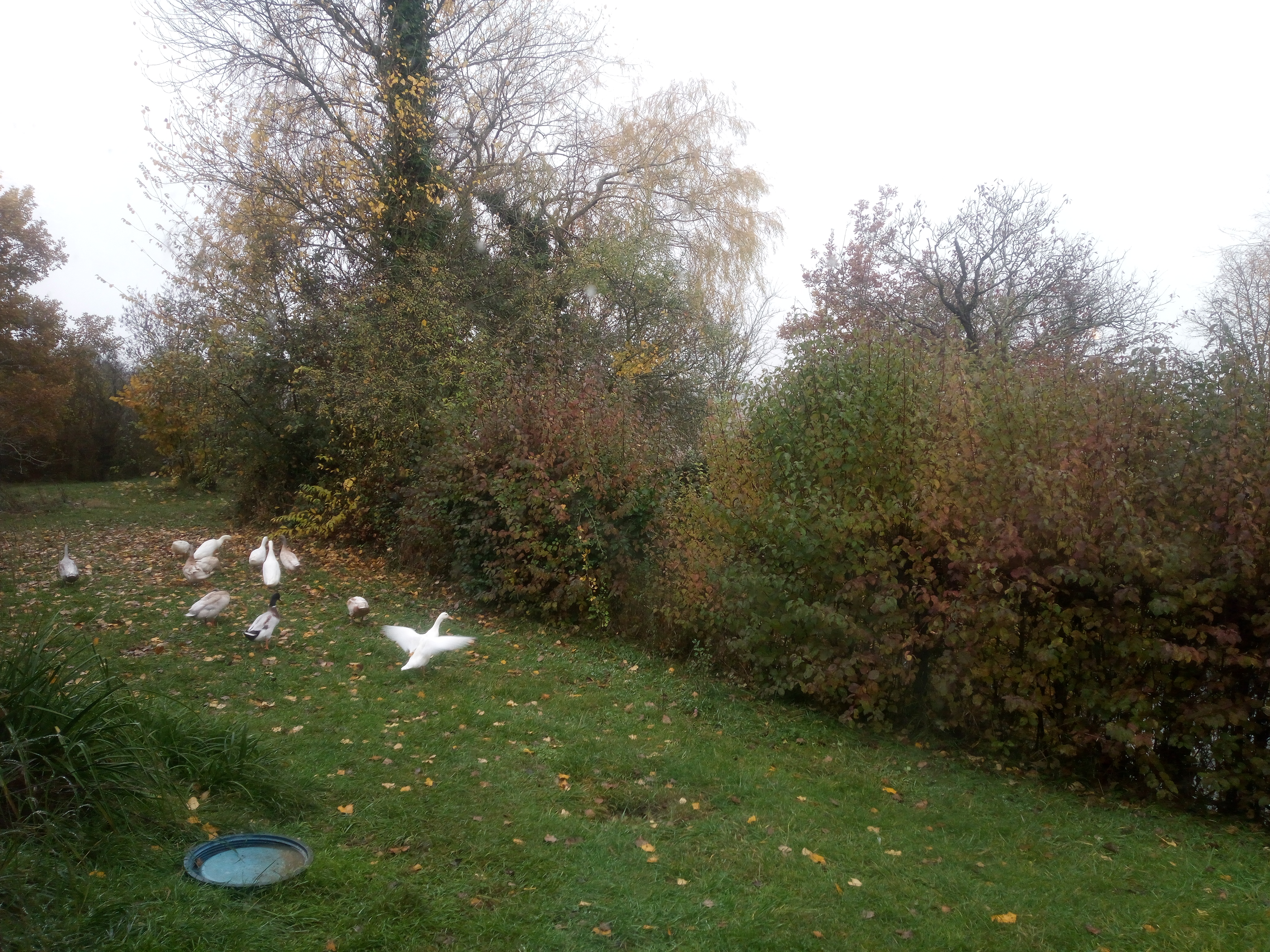 De dag vult zich met tutten. Tutten op een tuttempo. Douchen, voeten verzorgen, scheren, rugzak uitmesten, telefoontjes, was uithangen, mails versturen, koffie drinken, hangen, boeken doorsnuffelen en een beetje Duits kletsen met de waard. Om het uur komt hij de haard opstoken, maar volgens mij een excuus om even Duits te kletsen. Soms sta ik tien minuten gewoon naar de regenachtige herfst te staren terwijl twintig drukke eenden voorbij het raam waggelen en druk tetteren. Het leven in al zijn simpelheid.
