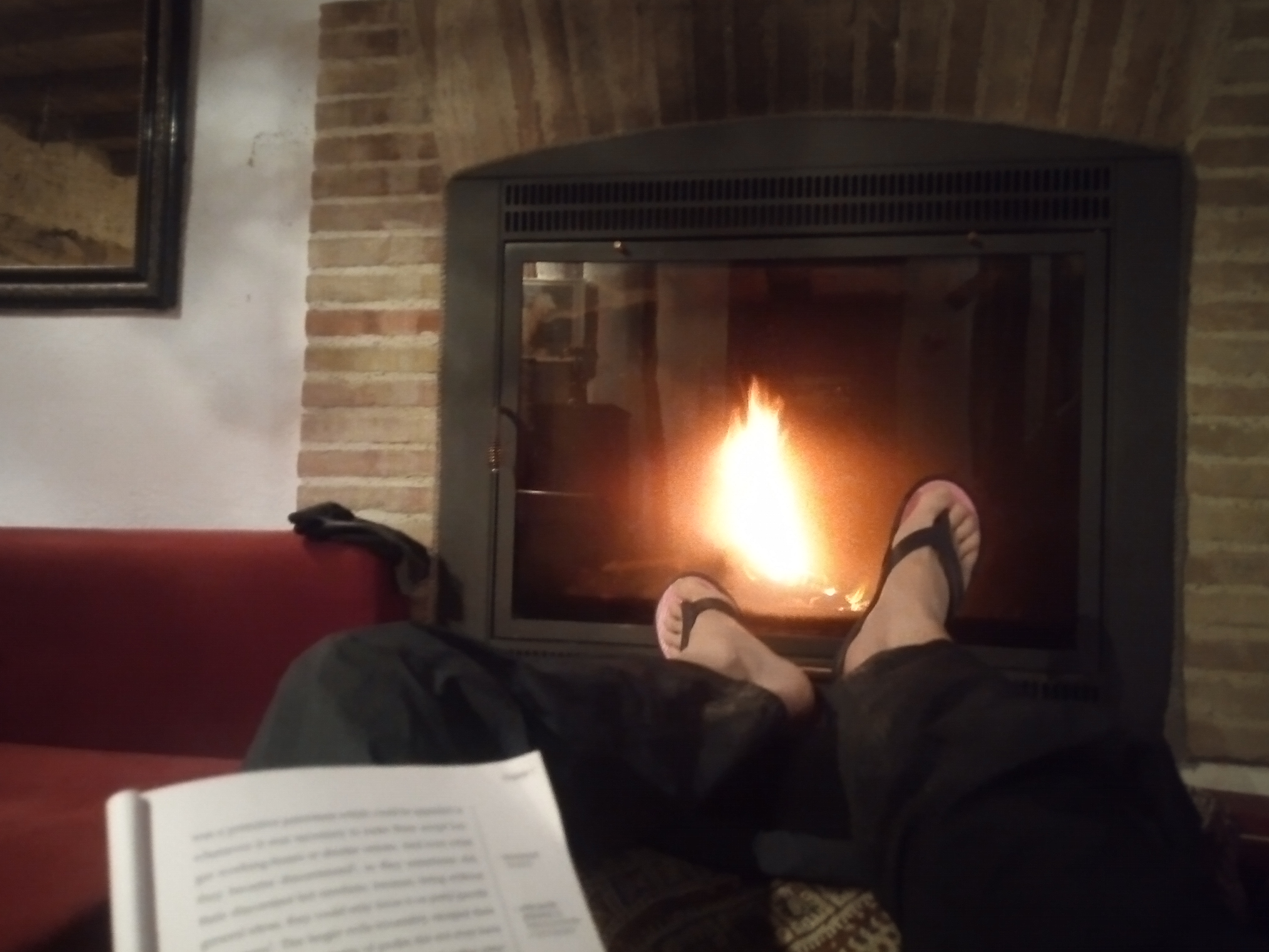 Ondertussen sluiten twee gasten aan in de gite. Een kerel die in heel Frankrijk de waterkwaliteit monitort en hier voor werk is. Hij zit de halve dag op de slaapzaal te videoconferencen. Een dame die in de medische planten zit. Ze praat moeilijk verstaanbaar Frans en we hebben een – voor mij doodvermoeiende – conversatie. Uiteindelijk merk ik op dat ze vast even stilte wil. Gelukkig wel. Ik lees verder bij mijn openhaard.