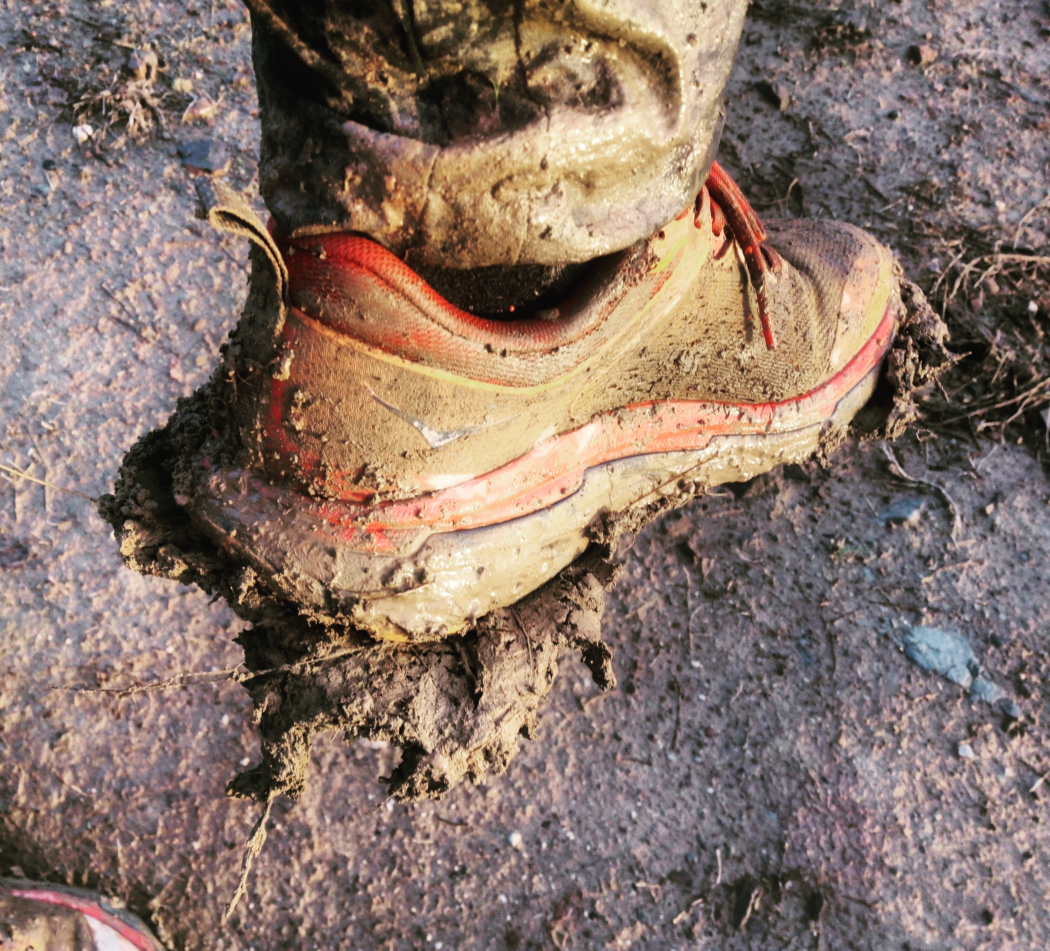 Had ik de klei al genoemd? Meer dan de helft mag ik door natte klei die per kilo onder je kloffies blijft plakken. Gek word ik ervan. Één groot glibberfestijn met één pole.