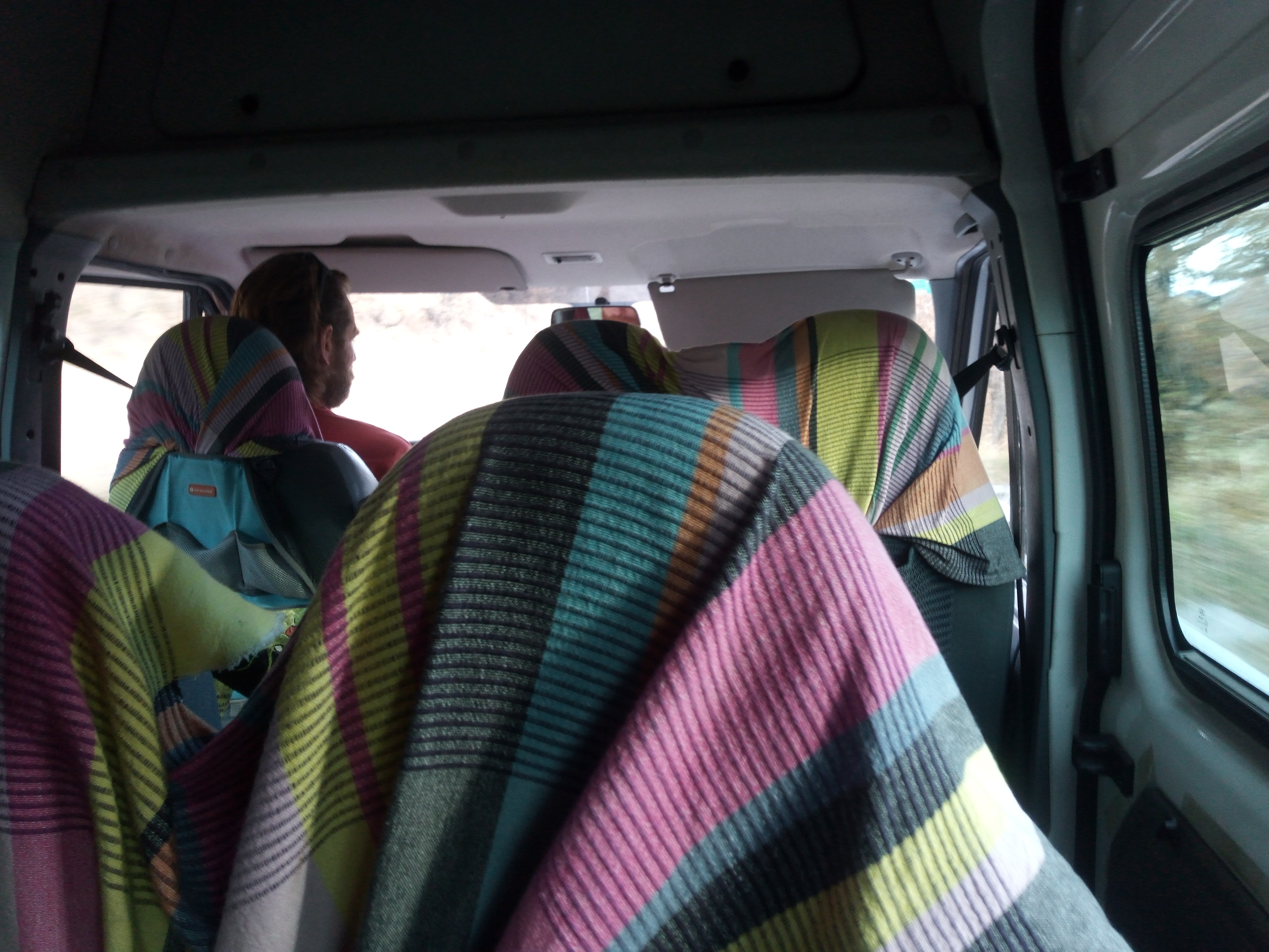 De eerste bestelwagen stopt. Een vader net dreadlocks met vijf totaal verwilderde kinderen met dreadlocks. Ik word helemaal achterin gemanoeuvreerd tussen tassen en andere spullen. De kinderen zijn vrij opgevoede apen en slopen de halve bus onder een oorverdovend lawaai. Papa houdt gelukkig de ogen op de weg en ik zie het landschap steeds ruiger worden. Bij een afslag met bergweggetje laat ik me eruit zetten. Vanaf hier moet ik de Puerto de Serrable beklimmen van 645 tot 1.000 meter. Een klim van 9,6 kilometer.
