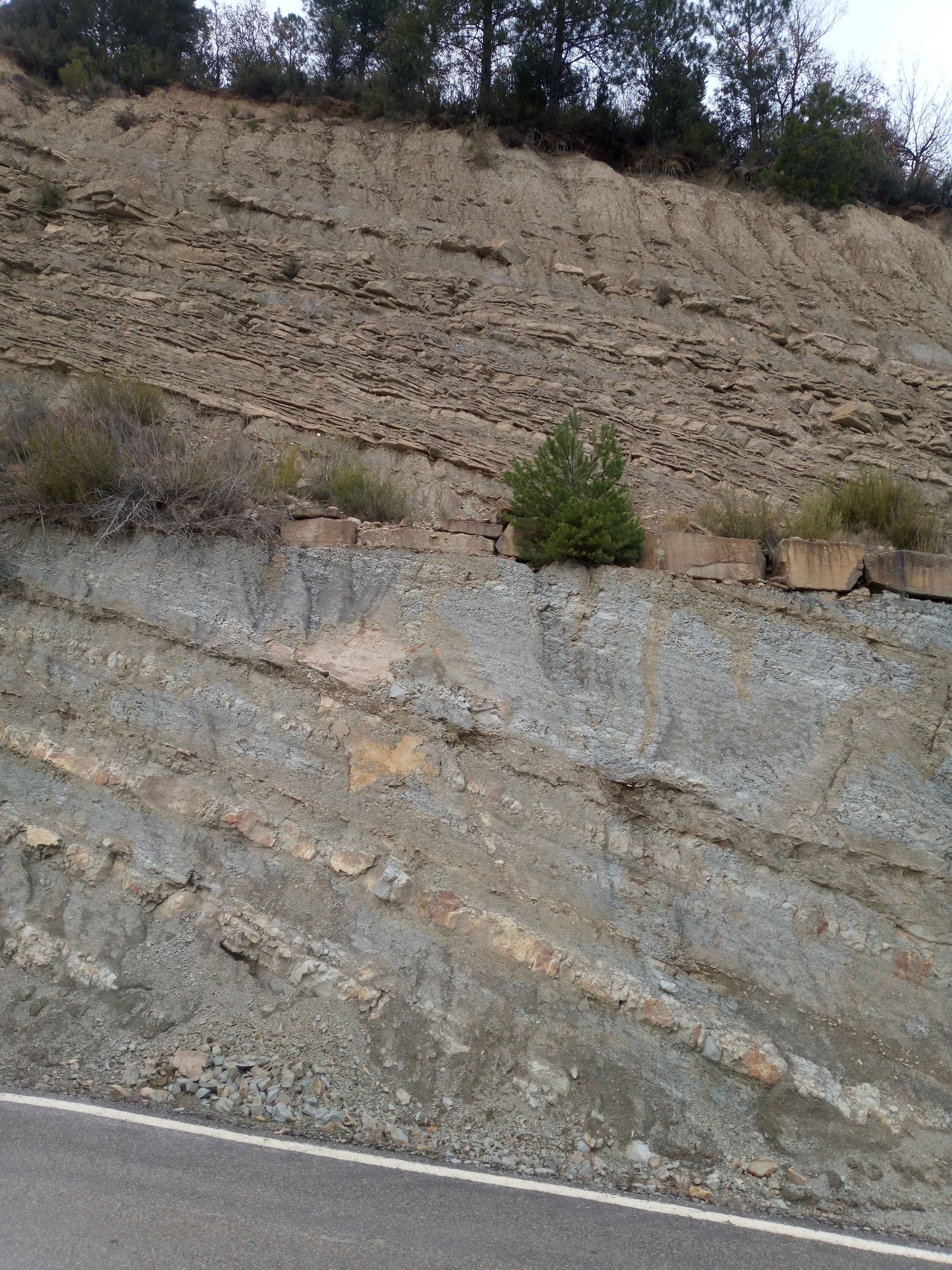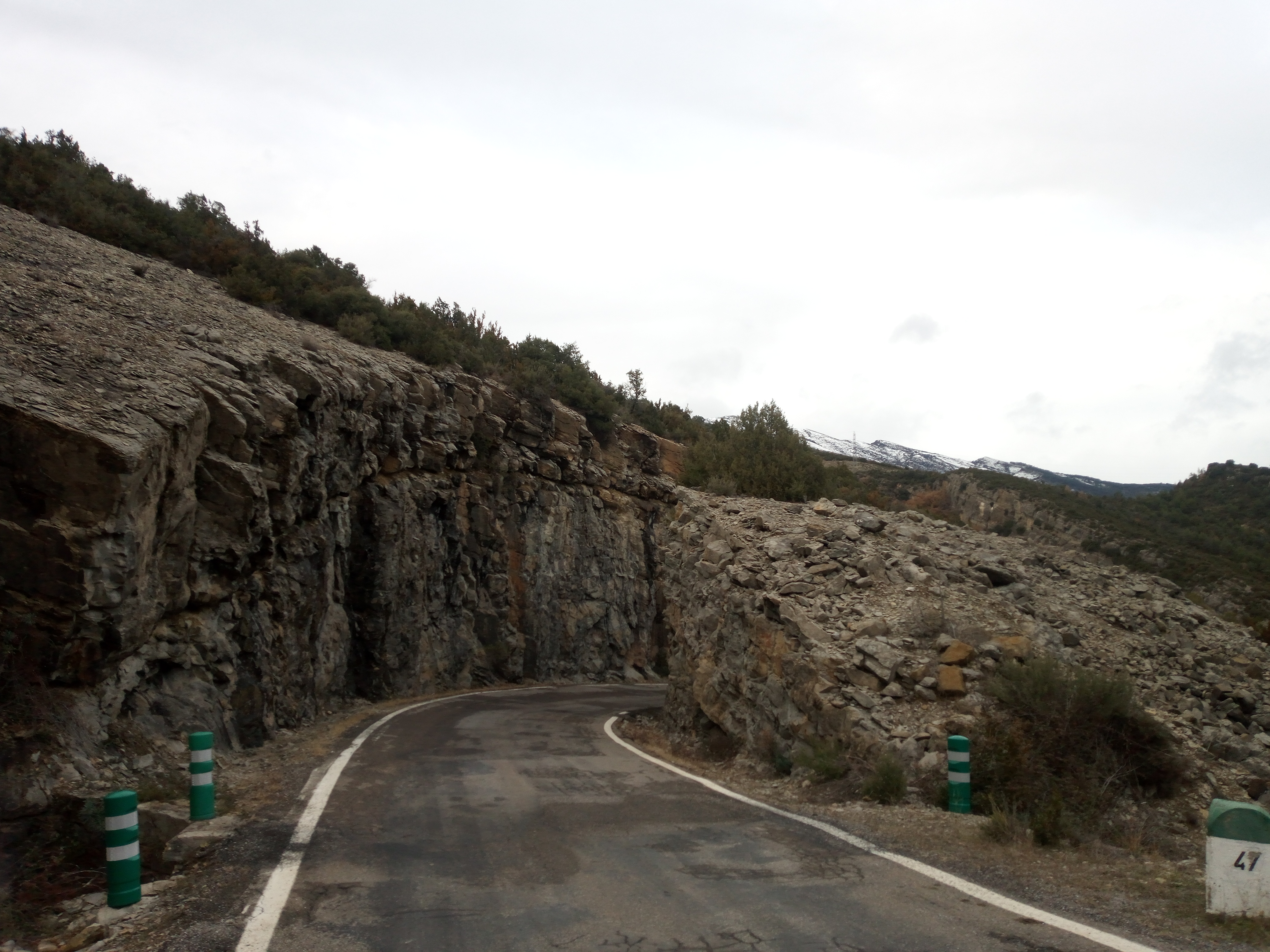 Een wat oudere man neemt me mee naar de snelweg die door het dal voert, de hoofdweg. We kletsen de hele rit geanimeerd, ofwel hij ouwehoert heerlijk rapidorapido tegen me aan en we schaterlachen erbij. Hij wijst voortdurend naar de bergkam en ik denk dat hij het heeft over spannende klimroutes. Steeds knik ik instemmend want ja, het is immers zo. De grootste lol hebben we. Op een rotonde zet hij me eruit. Ik kan aan de N-weg naar Jaca gaan liften of de snelweg. Dat laatste doe ik want op de eerste weg rijdt één auto per uur.