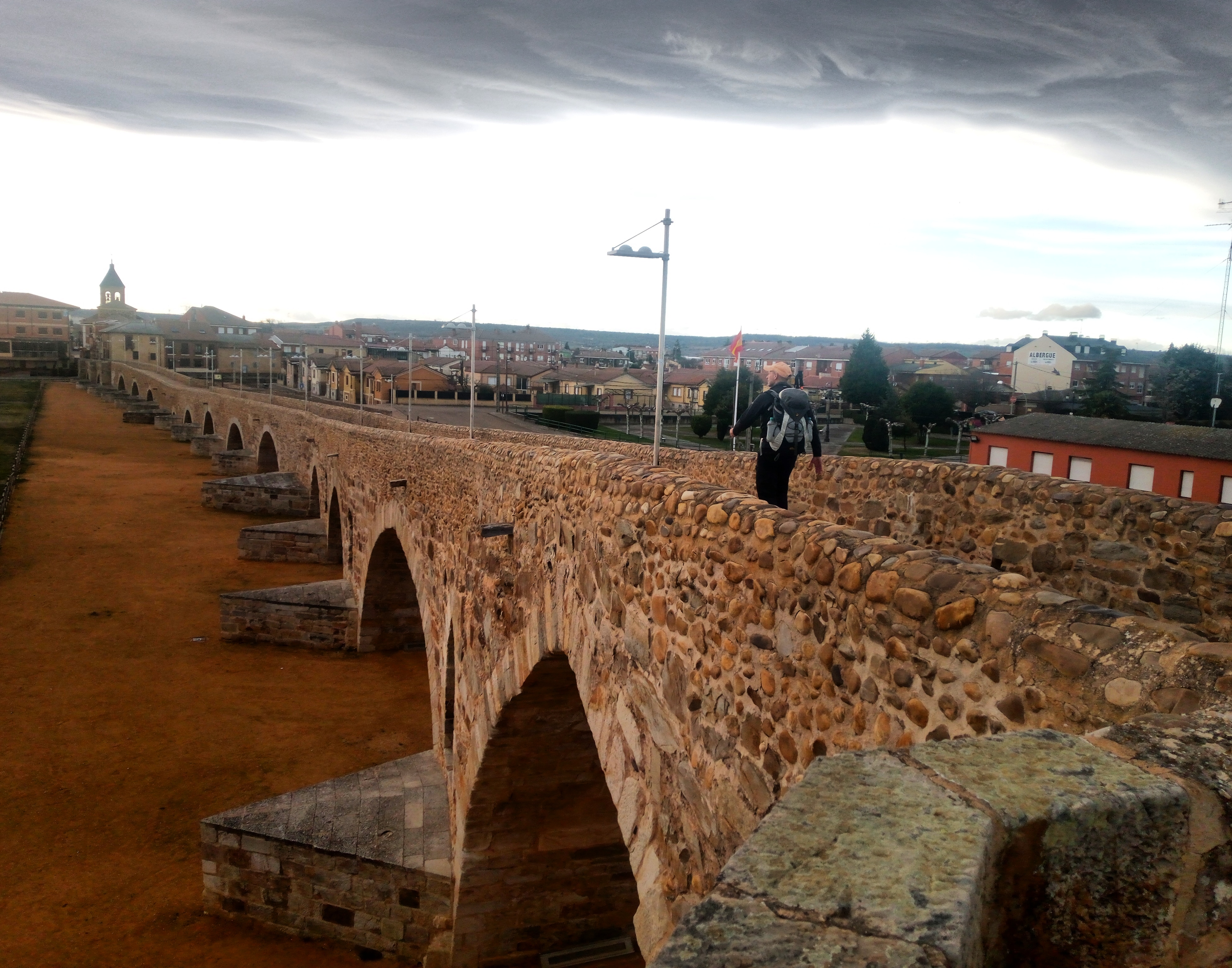 We koersen aan op Hospital de Orbigo hetgeen klinkt als een oord voor zieken, maar overkomt als een prettig dorp waar jaarlijks een middeleeuwen-festival wordt georganiseerd. Kenmerkend aan het dorp is de lange oude brug, de Puente de Orbigo. Na een dag lopen zijn de pootjes stram en doen de voetzolen pijn op de klinkertjes.