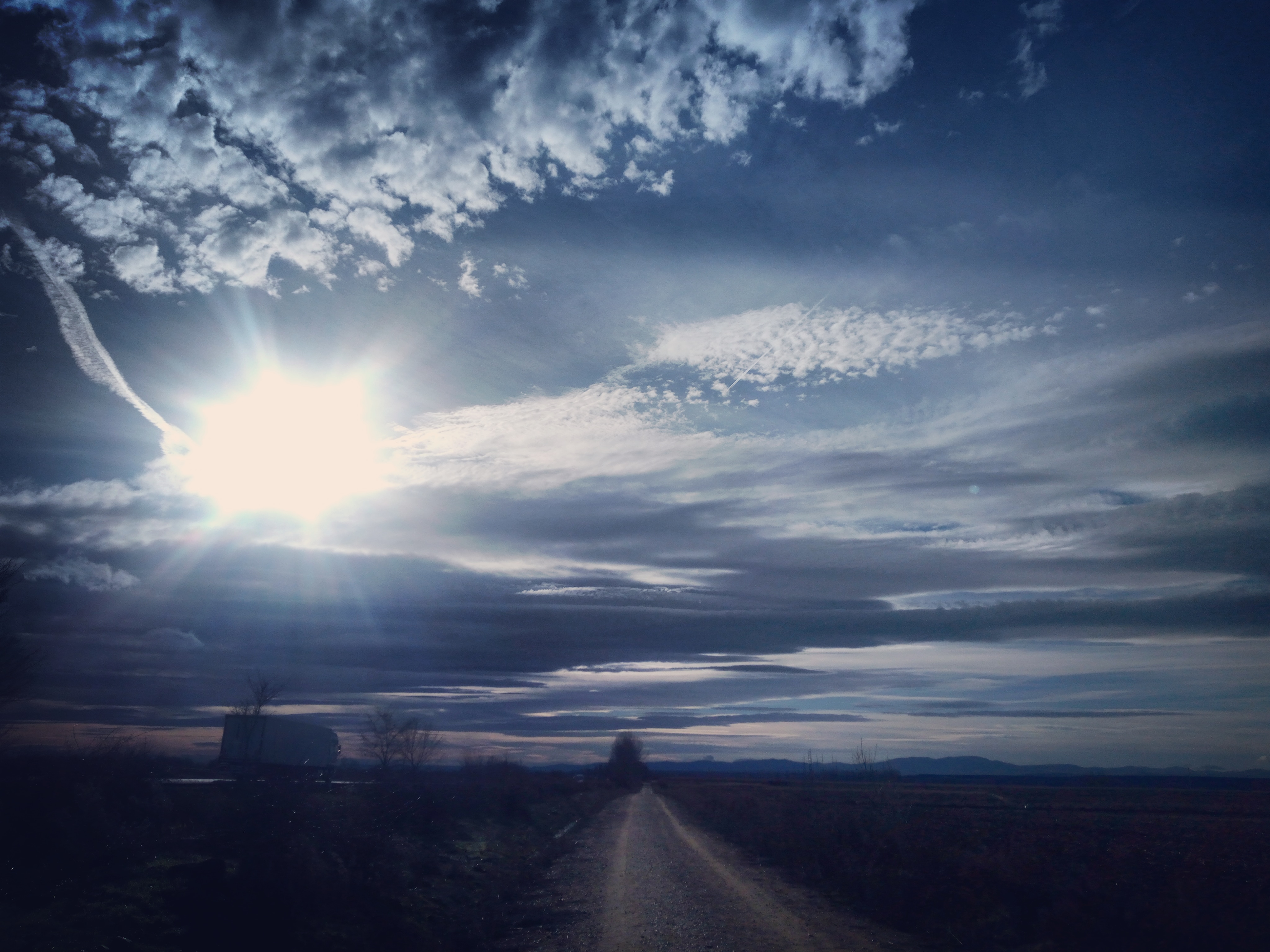 Dat is maar goed want we blijven de weg de hele dag volgen. Het is een drukkere weg dan alle wegen waar ik voorheen langsliep in Spanje. Daar staat tegenover dat het landschap met de meter verlatener en spectaculairder wordt. In de verte voor en rechts van ons besneeuwde bergen. Wolken drijven voorbij en zorgen voor spectaculaire luchten. Marcel is in Arizona en Utah geweest en ziet gelijkenissen.
