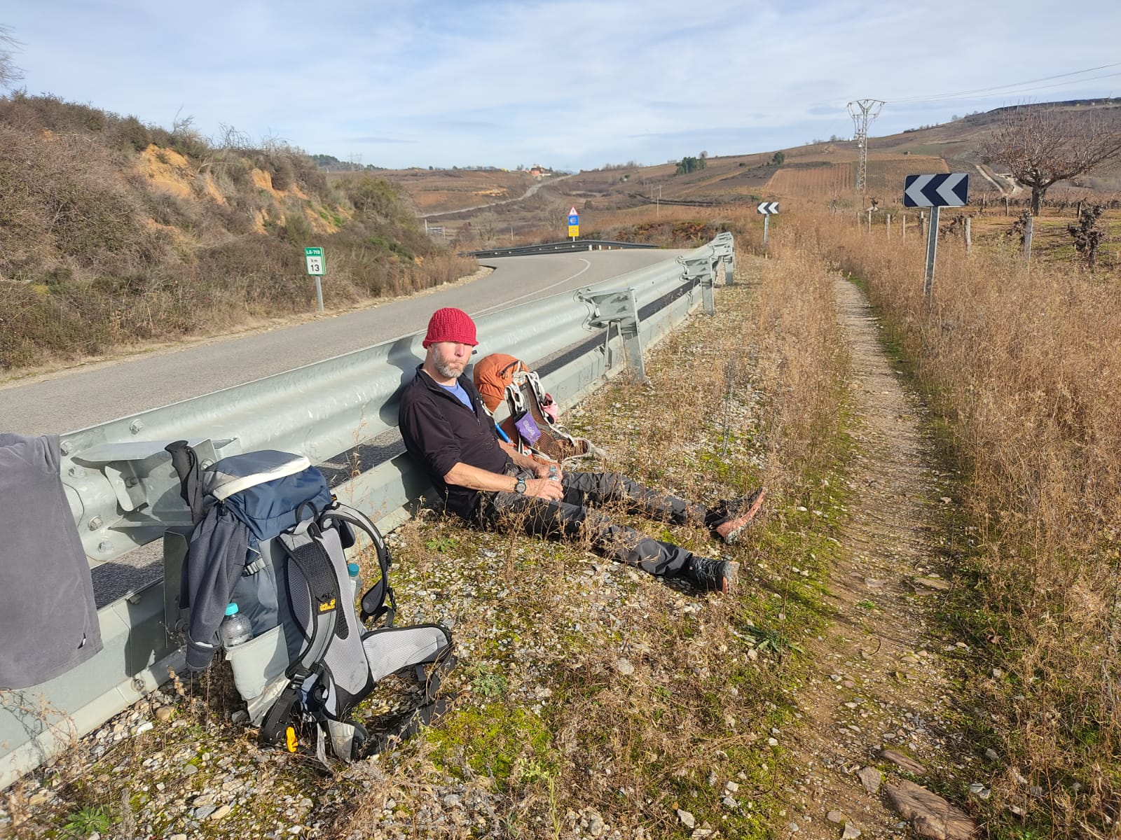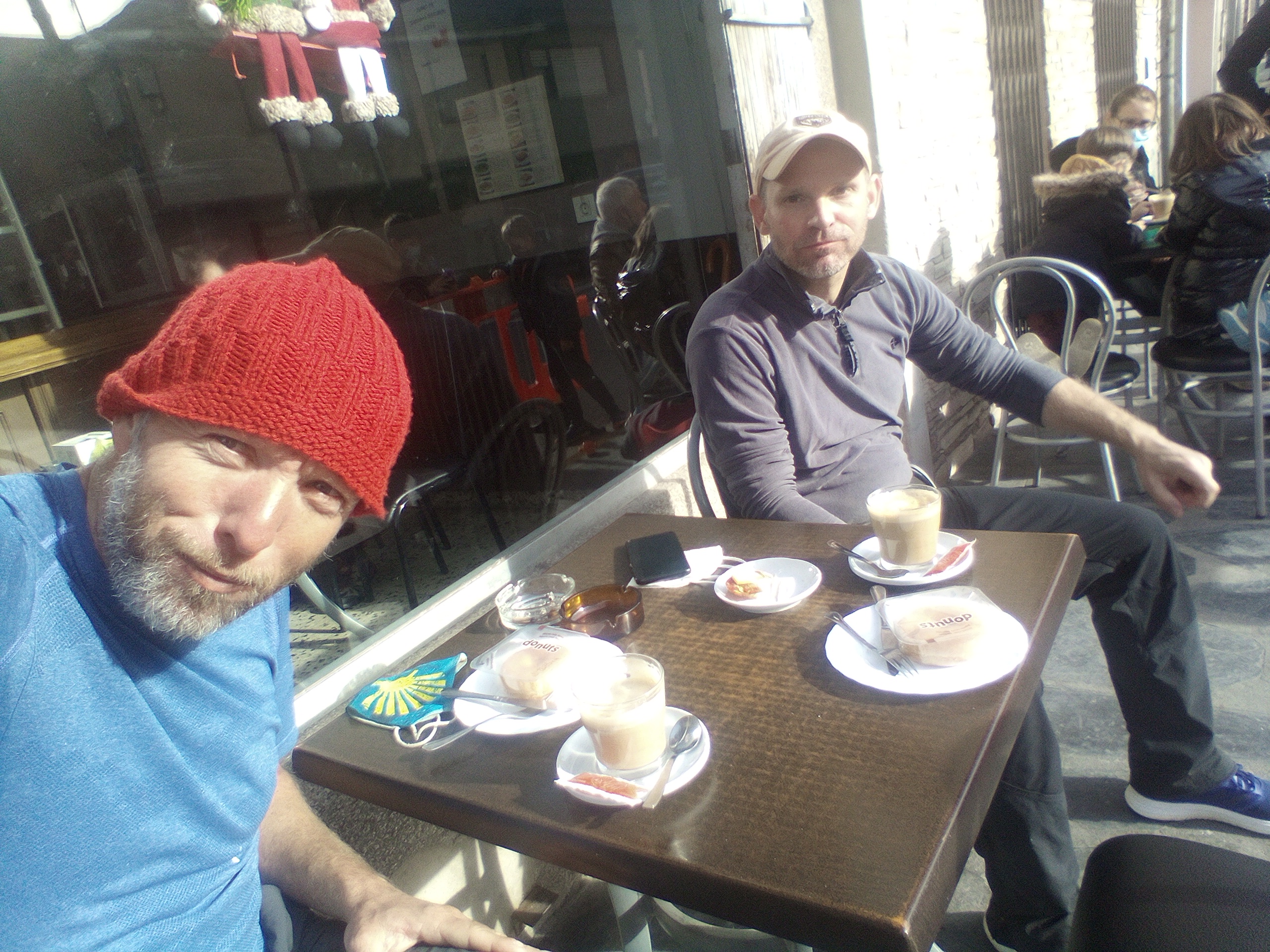 Beide zijn we gretig als de dag begint. Het ontbijt voelt dan ook minder ontspannen aan. Het weer is prachtig, strakblauwe hemel en we beginnen met tien graden. In heel Spanje schijnen recordtemperaturen te worden gehaald. Mensen badderen in zee, noord en zuid