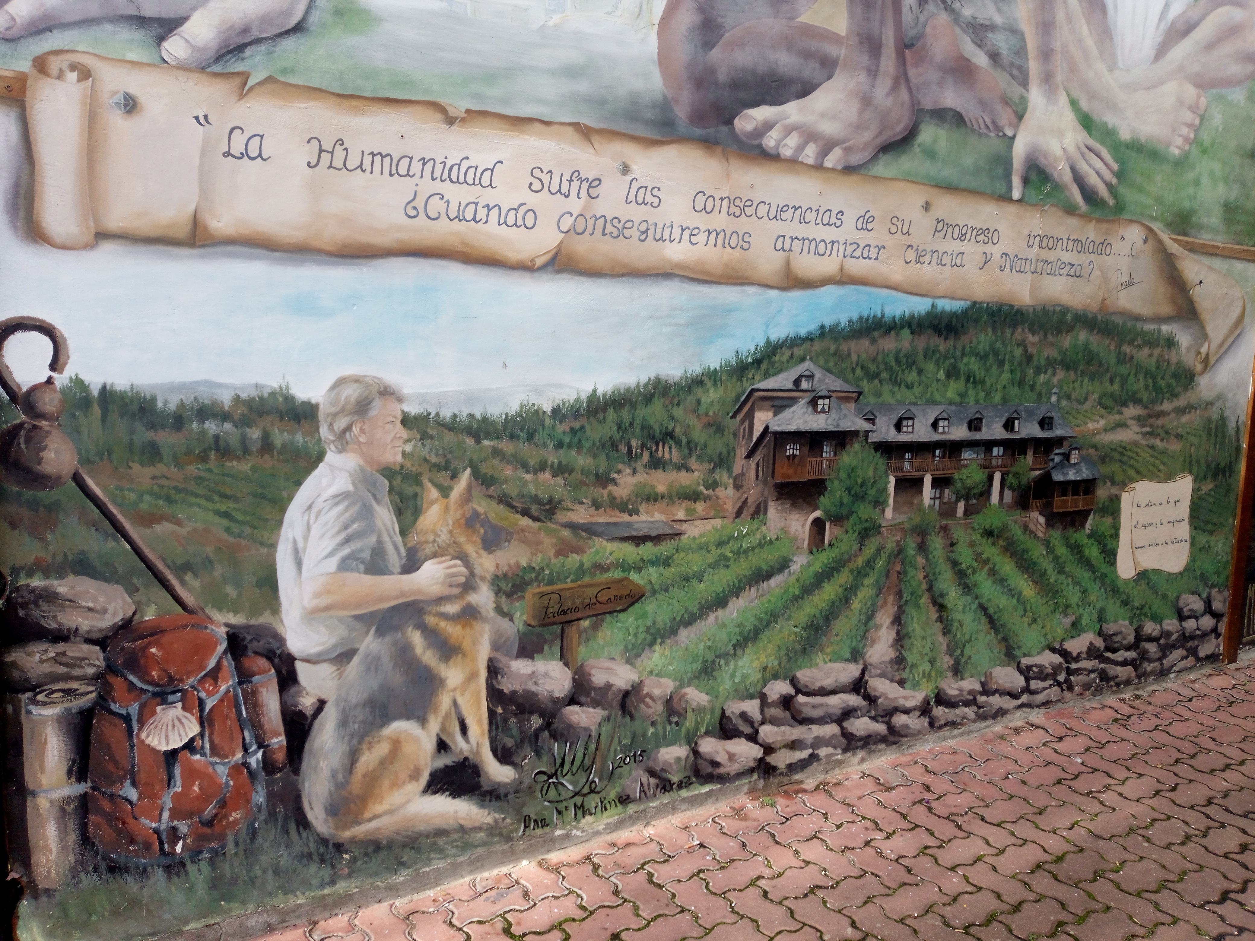 Hospitalero Manuel is een ontspannen dude die ons meteen feteert op vino tinto. Hij is manager van een hotel in Cuba en heeft vier weken Camino gelopen en is hier nu als vrijwilliger actief omdat hij vriend is van de eigenaar. Het is een sympathieke kerel die hier de rest van de middag zingend rondloopt, ons trakteert op brood met chorizo en hij blijft onze glazen maar volschenken.