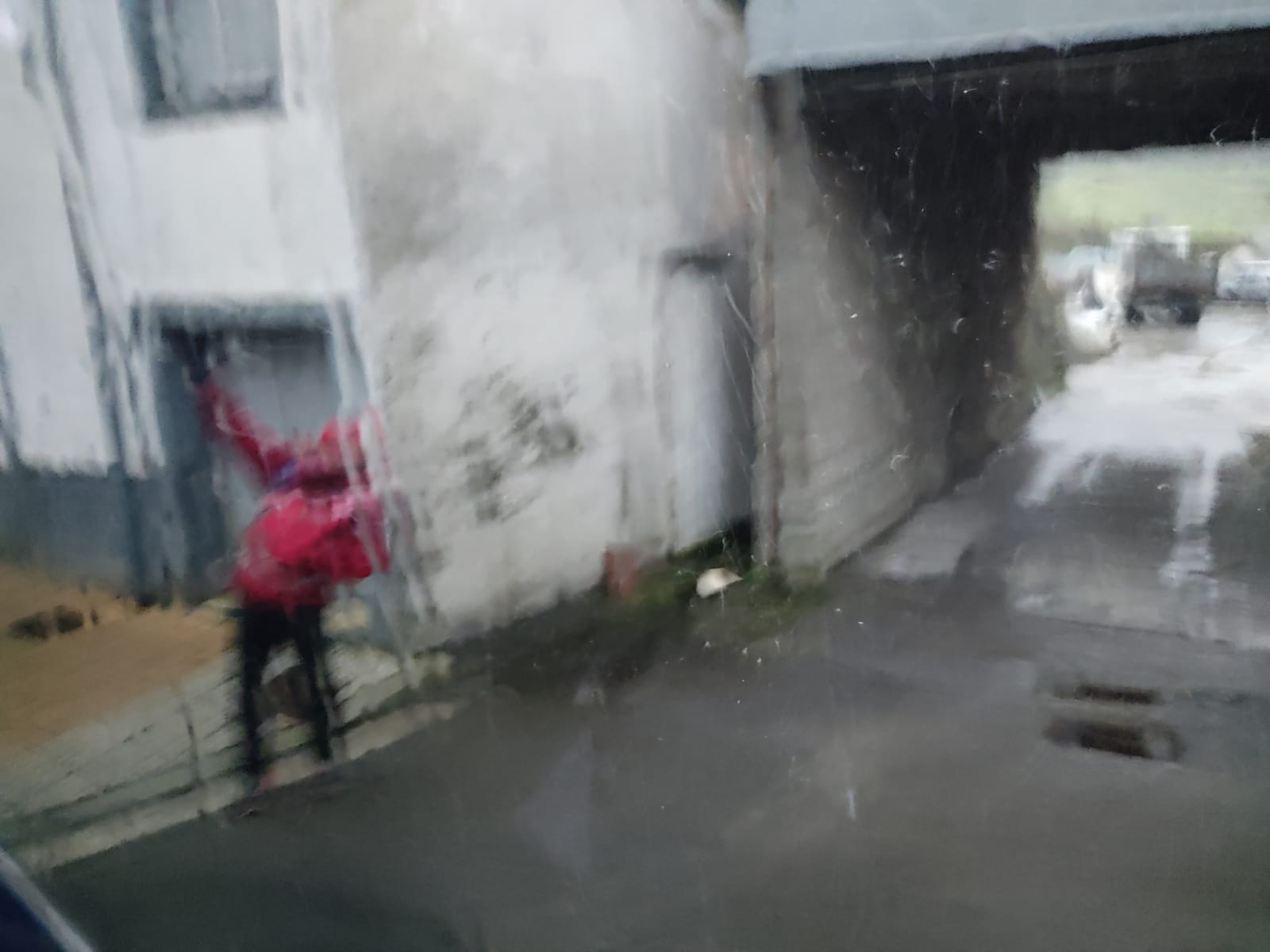 In het dorp boven kledingwissel. Het is net als bij een poolexpeditie de kunst zo min mogelijk te dragen. Wat je niet aan hebt, wordt niet nat en gaat niet stinken. Je zweet immers van binnen en regent nat van buiten. Wat nat is, isoleert niet meer. De kunst om niet te koud te worden en het net draaglijk te maken. Je moet blijven werken om het aangenaam te blijven houden. In dit geval zweetshirt, shirt lange mouw en dunne regenjack. Een werkdag.