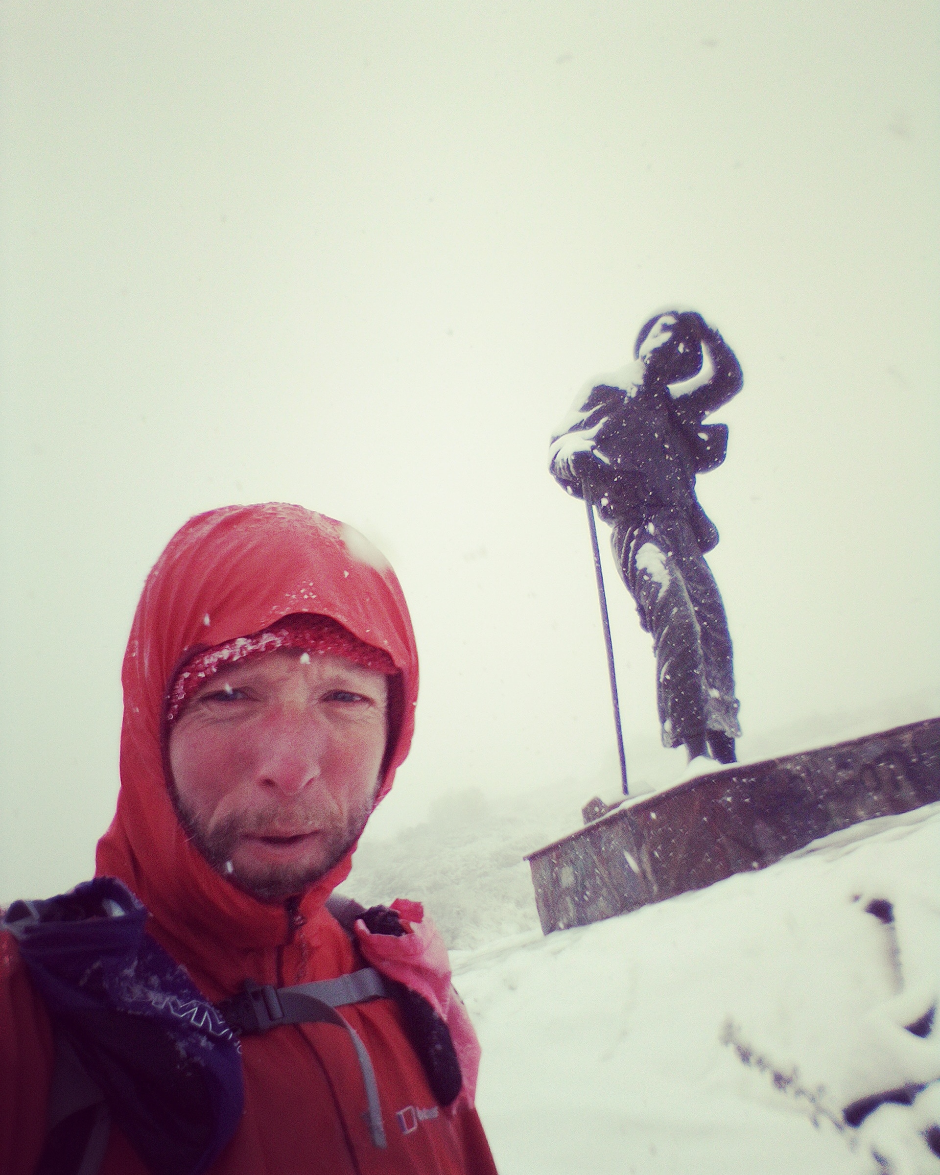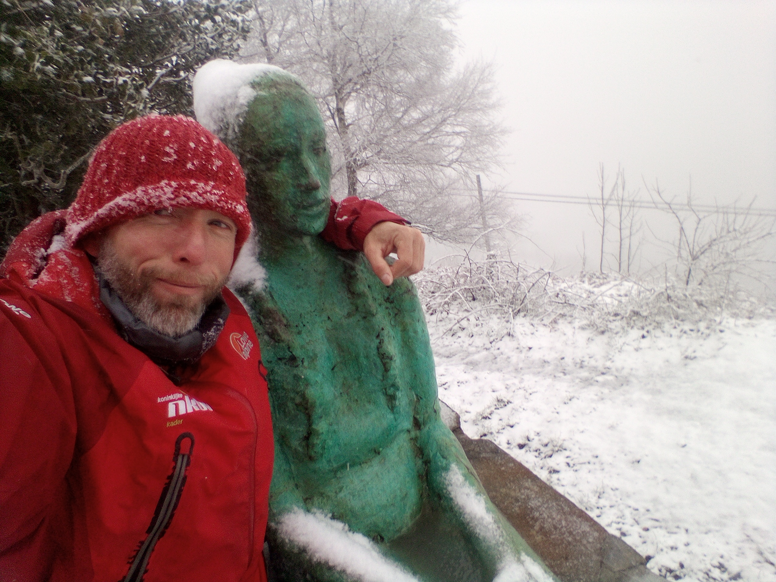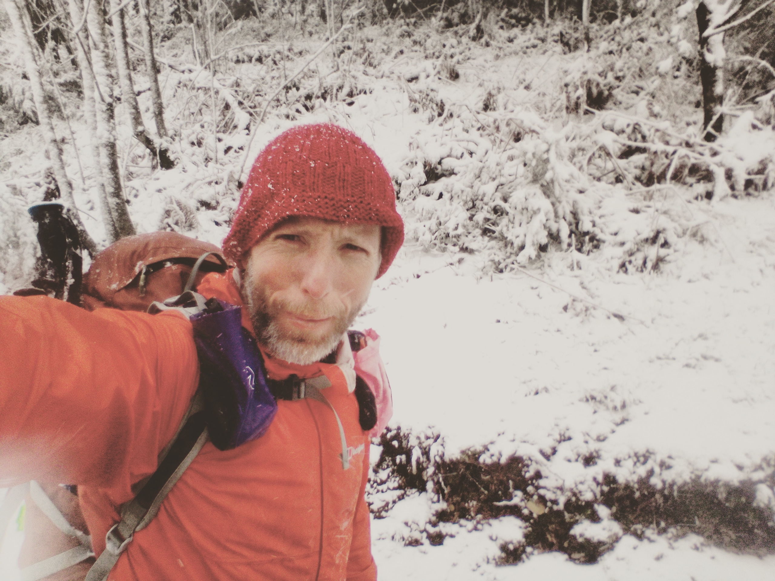 Natte sneeuw gaat over tot steeds dikkere natte sneeuw naarmate ik hoger kom. Het is hondenweer. Niet veel van deze dagen tijdens mijn project.