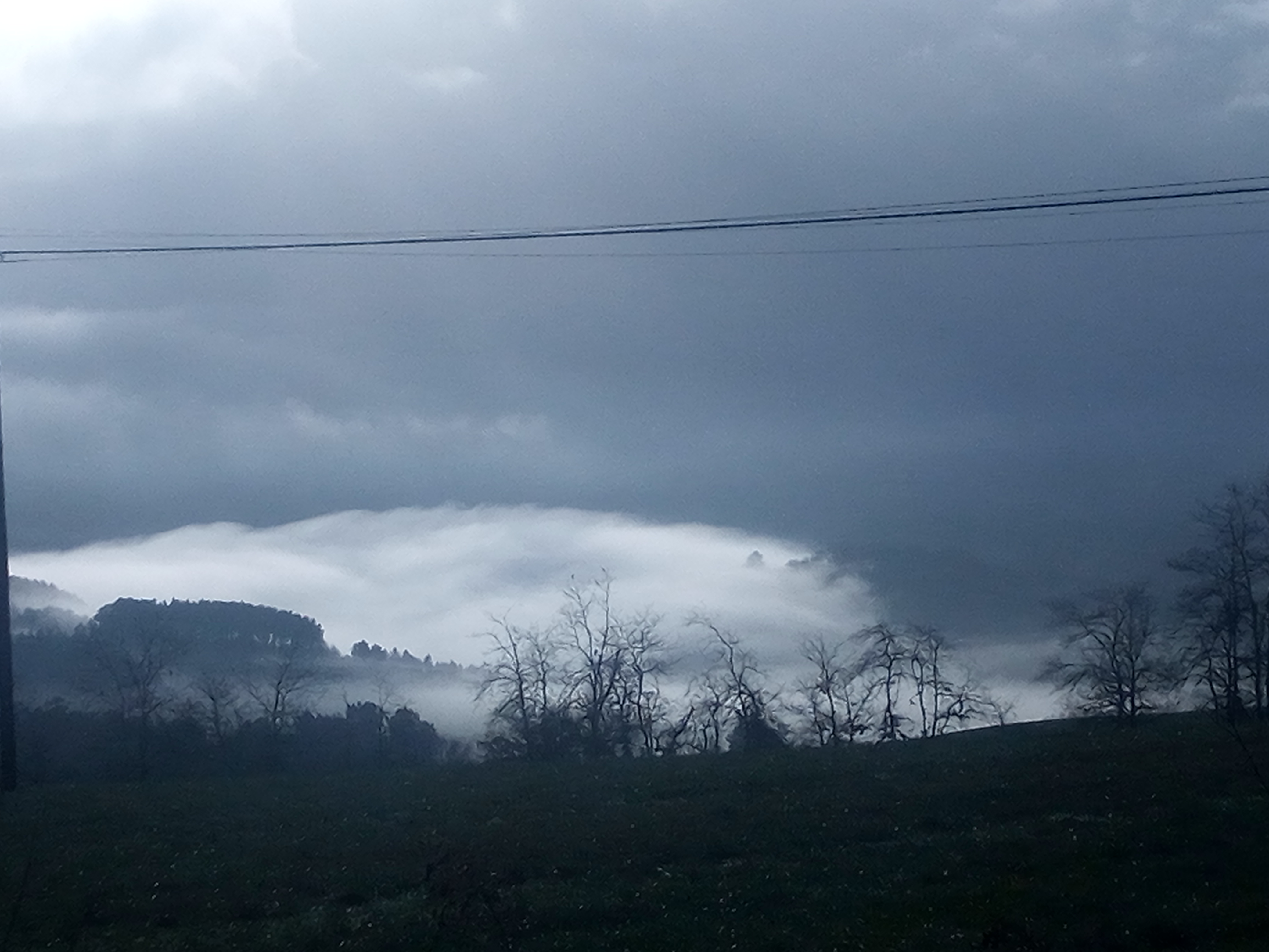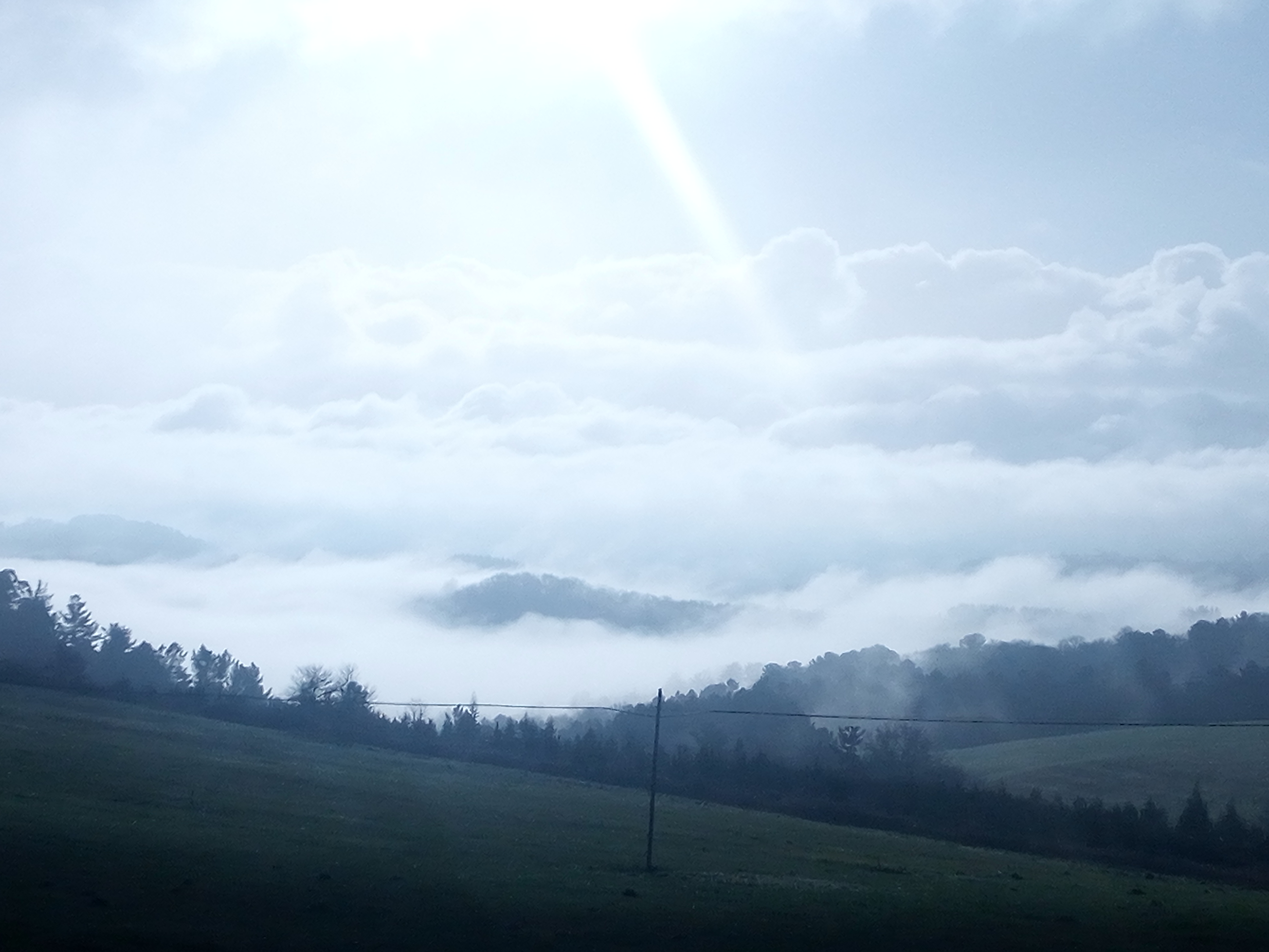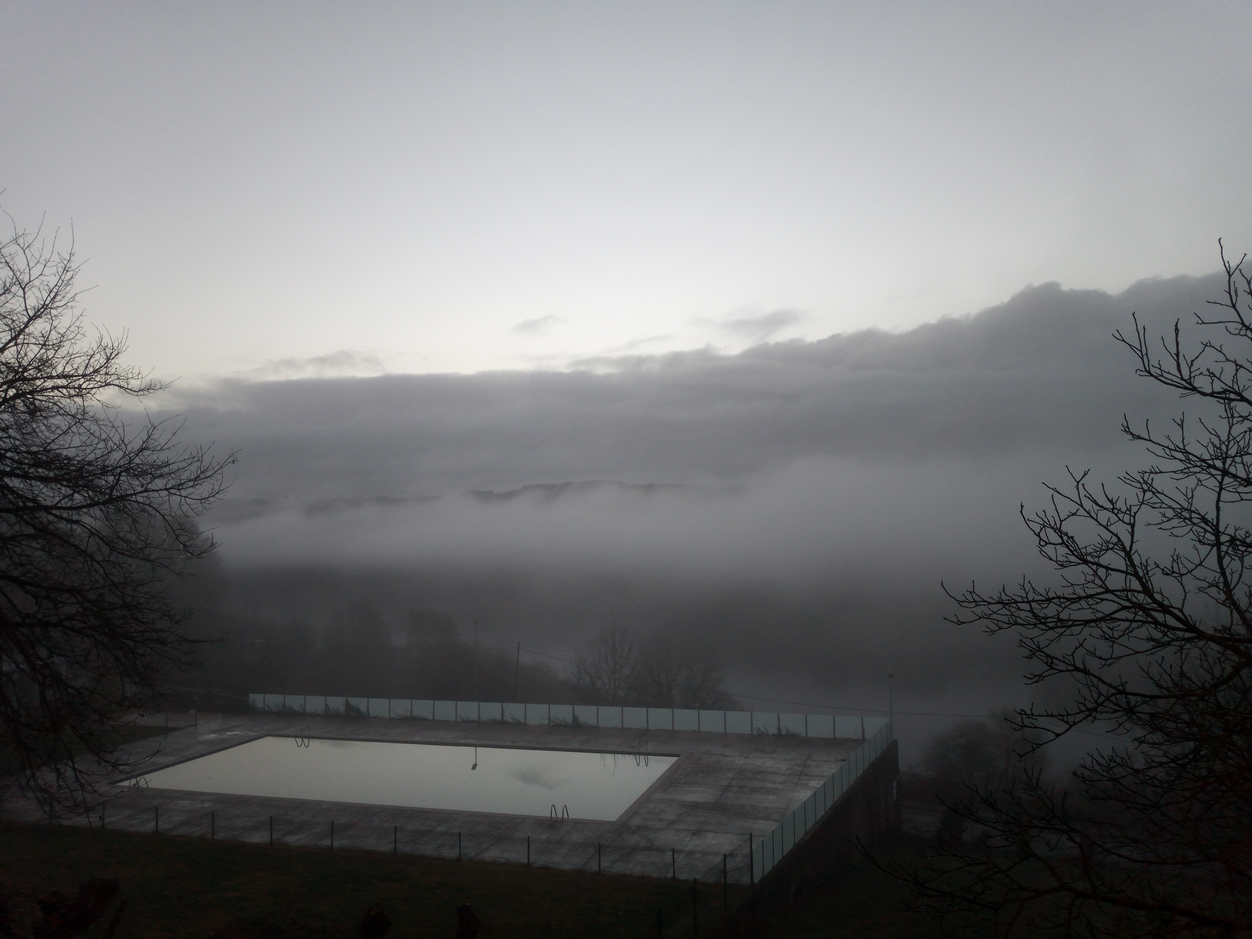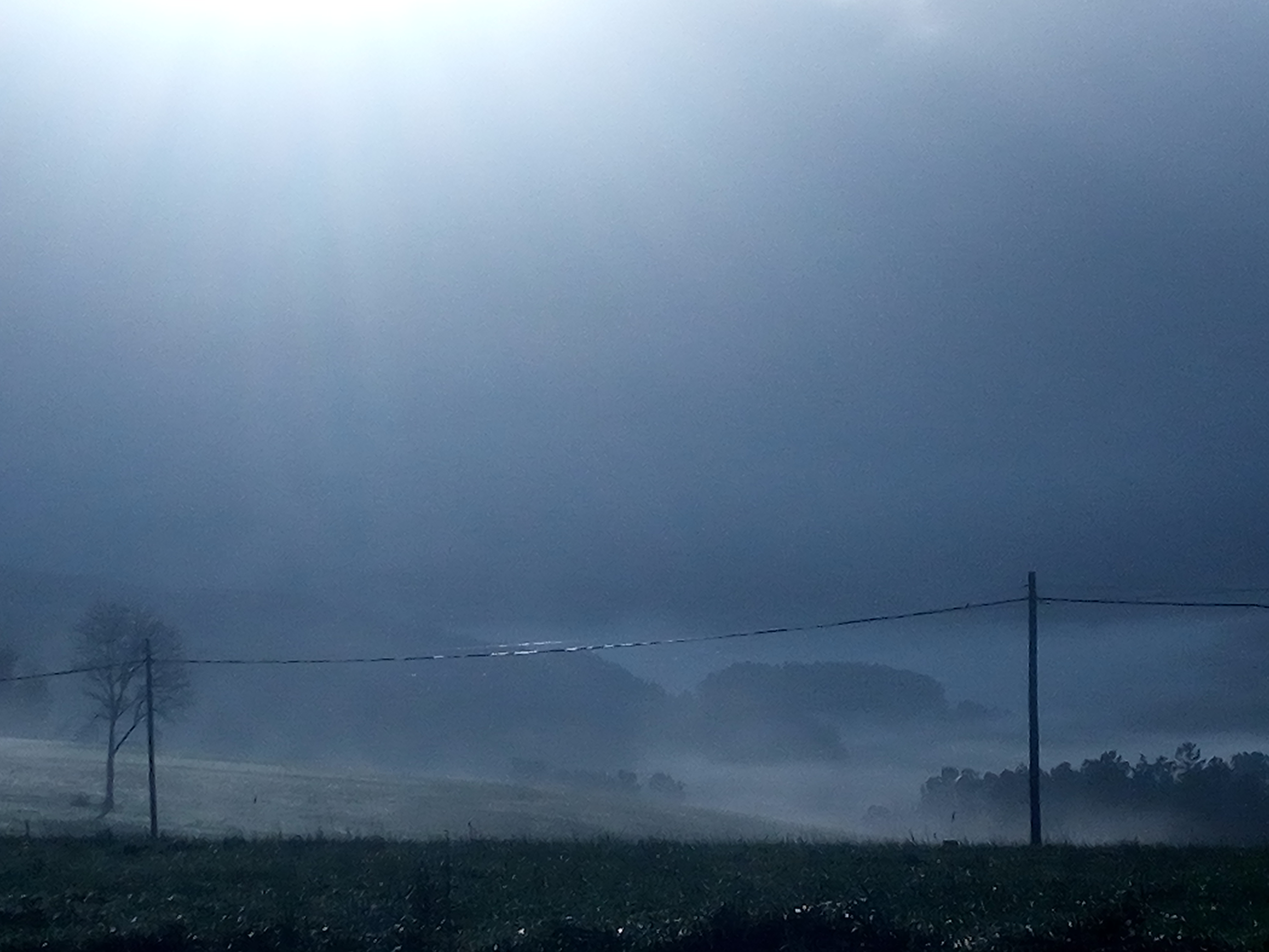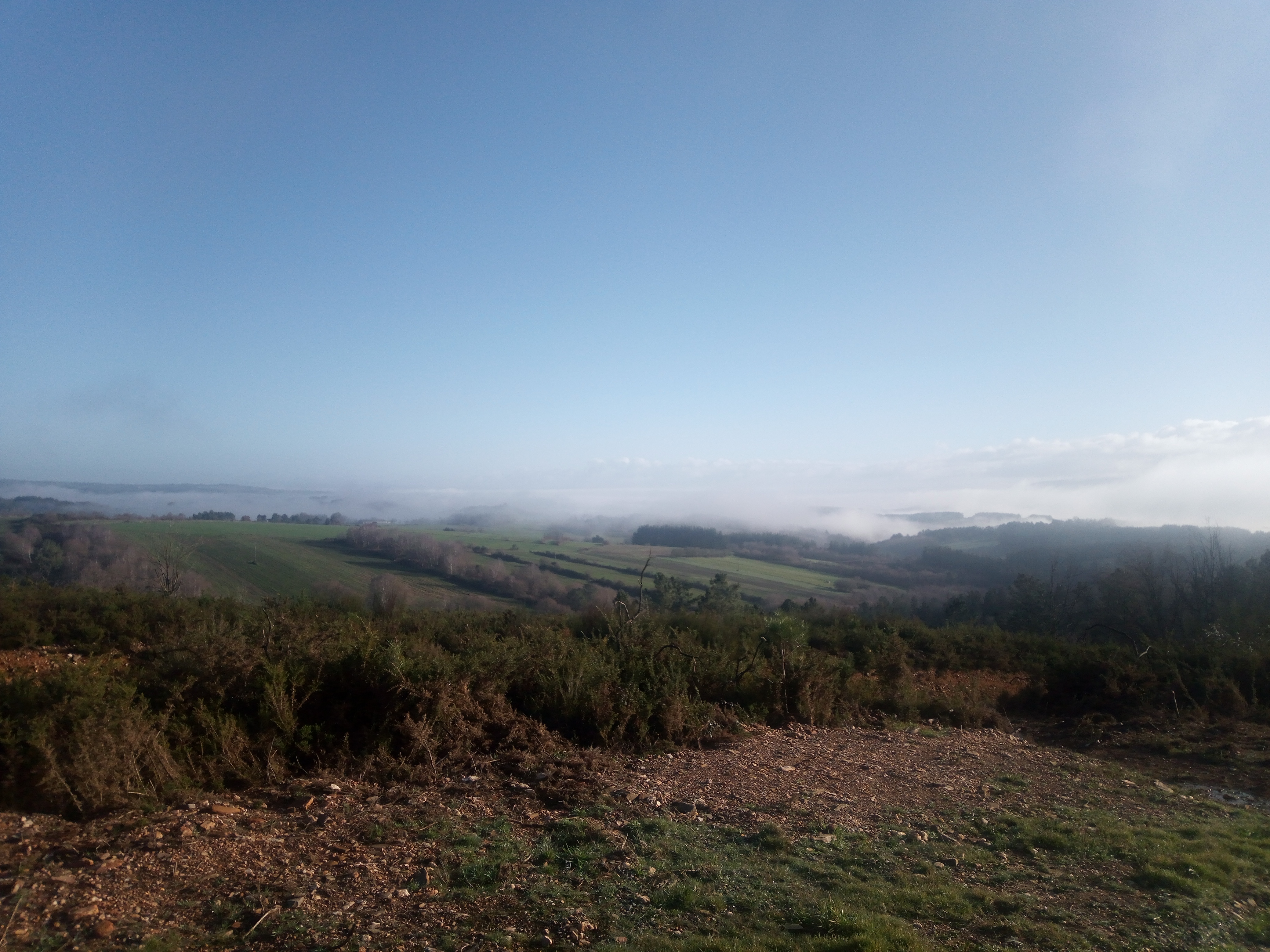 Er hangt dikke mist in de vallei, boven de rivier. De lange brug naar Pontmarin steekt er spookachtig doorheen. Het is een prachtige, frisse herfstdag. Al snel klim ik uit de wolken en kijk neer op het witte wolkendek dat het dal bedekt. Ik ben in mijn element en ren lekker door. Ik haal vandaag 14 pelgrims in. Ongelooflijk, waarom strompelt iedereen zo? Ik weet zeker dat ik tenminste het vijfvoudige heb gelopen. Ik waan me bij de Marathon des Sables; na drie dagen kan niemand meer fatsoenlijk voortbewegen…