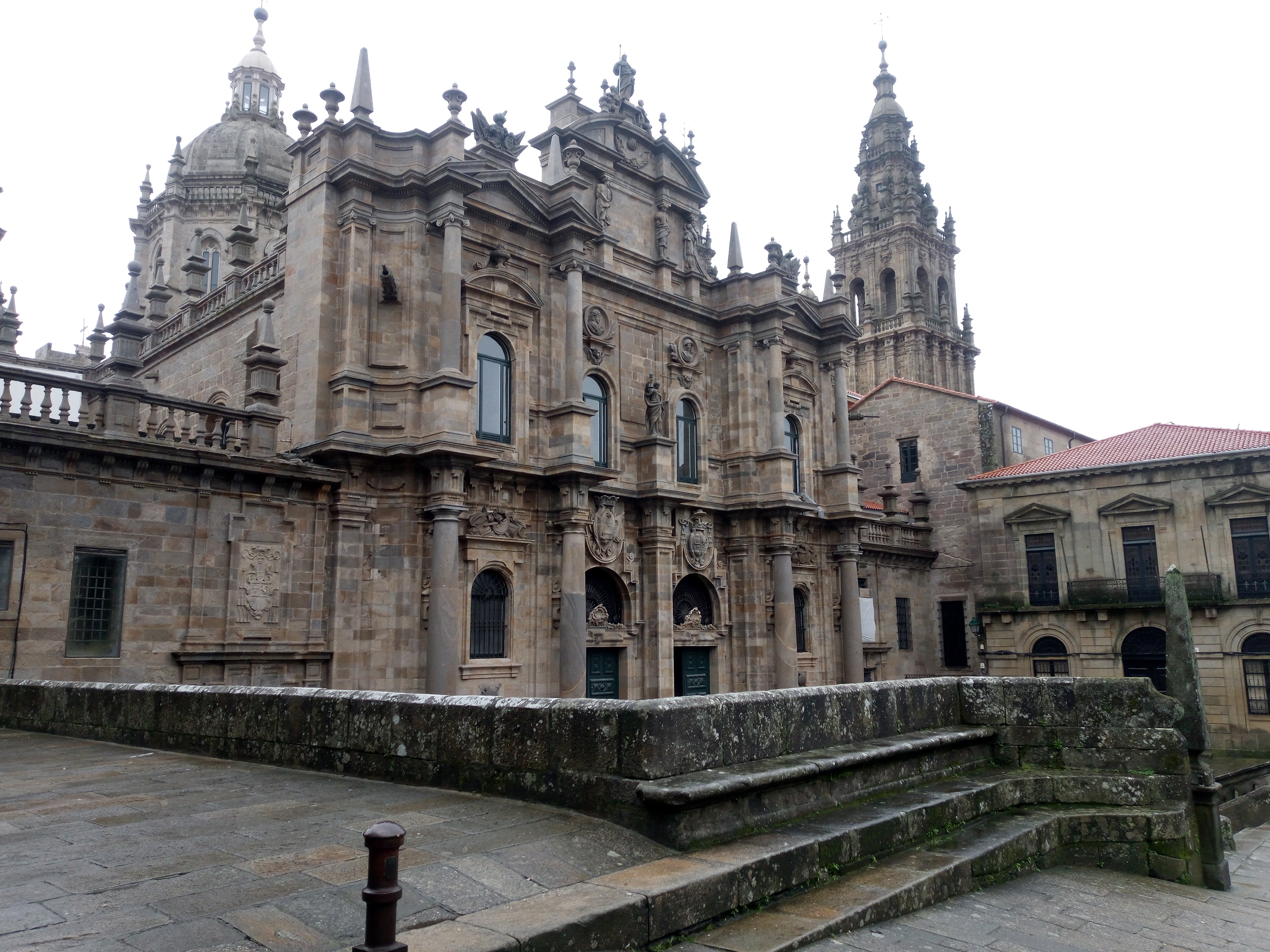 Santiago is aardig, maar nu ook weer niet het Mekka dat ik ervan verwachtte. Hier en daar een leuk zaakje met souvenirs, afgewisseld met barretjes en restaurants. Maar heel sfeervol doet het zo op het eerste gezicht niet aan. Misschien is het de regen.