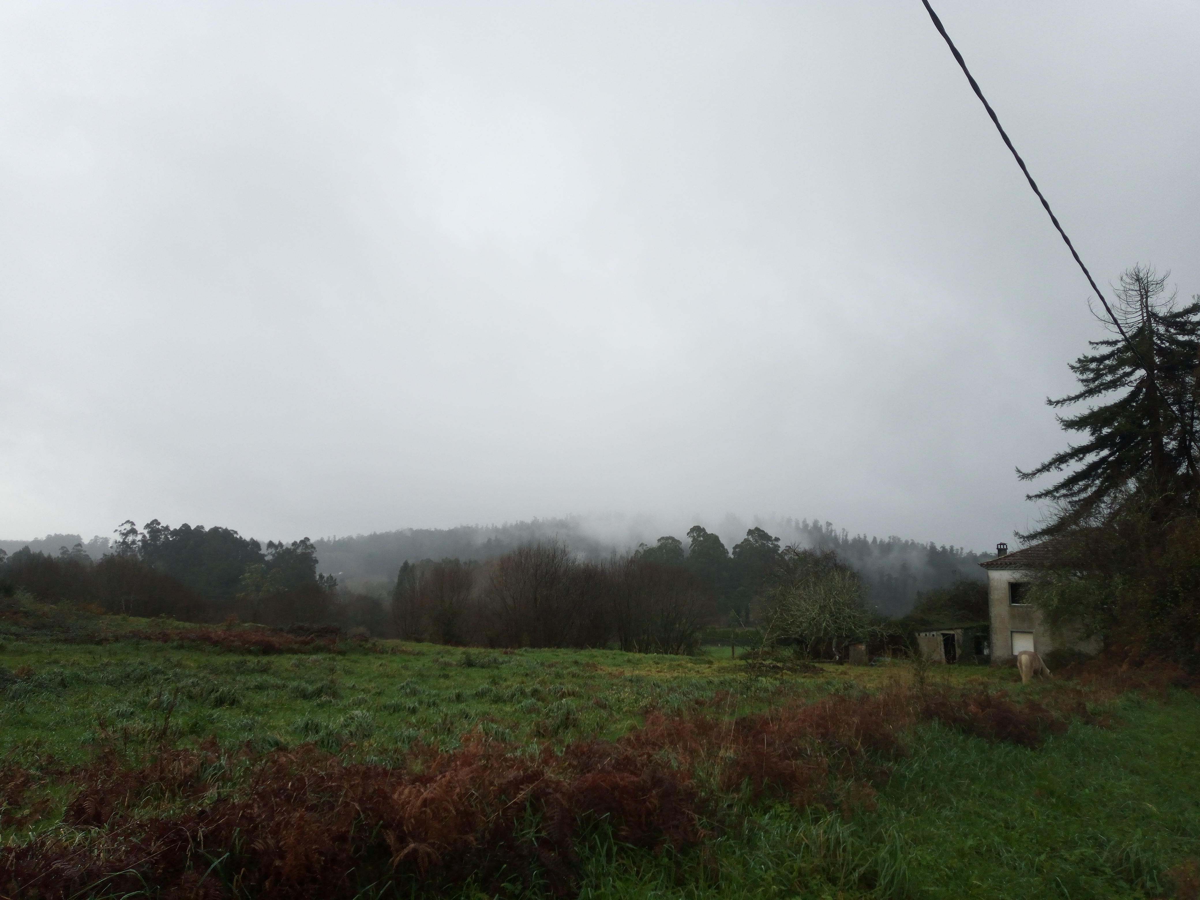 Halverwege een kroeg waar ik een kop koffie drink. Drie keer slaat de stroom uit en zit ik in het donker. Ik continueer mijn queeste in regen die nog net iets fijner is geworden.