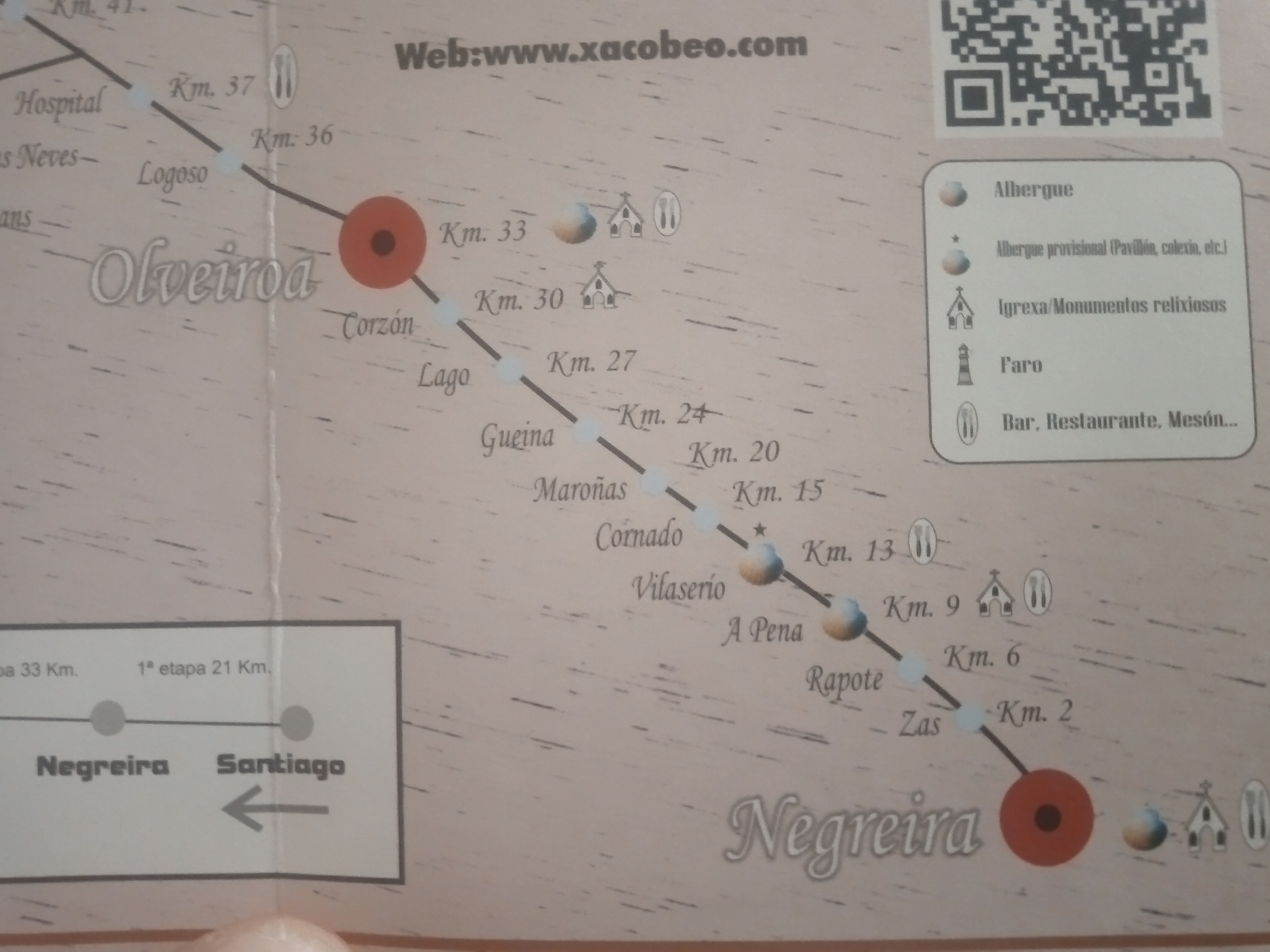 Om half twaalf kuier ik Santiago in op het dooie gemakje. Vandaag is het 21 kilometer naar Negreira. Plus twee kilometer omdat je hotel aan het begin van Santiago zit. Plus twee omdat je herberg aan de achterkant van Negreira zit. Plus nog een, geen idee waarom. Zo’n dag.