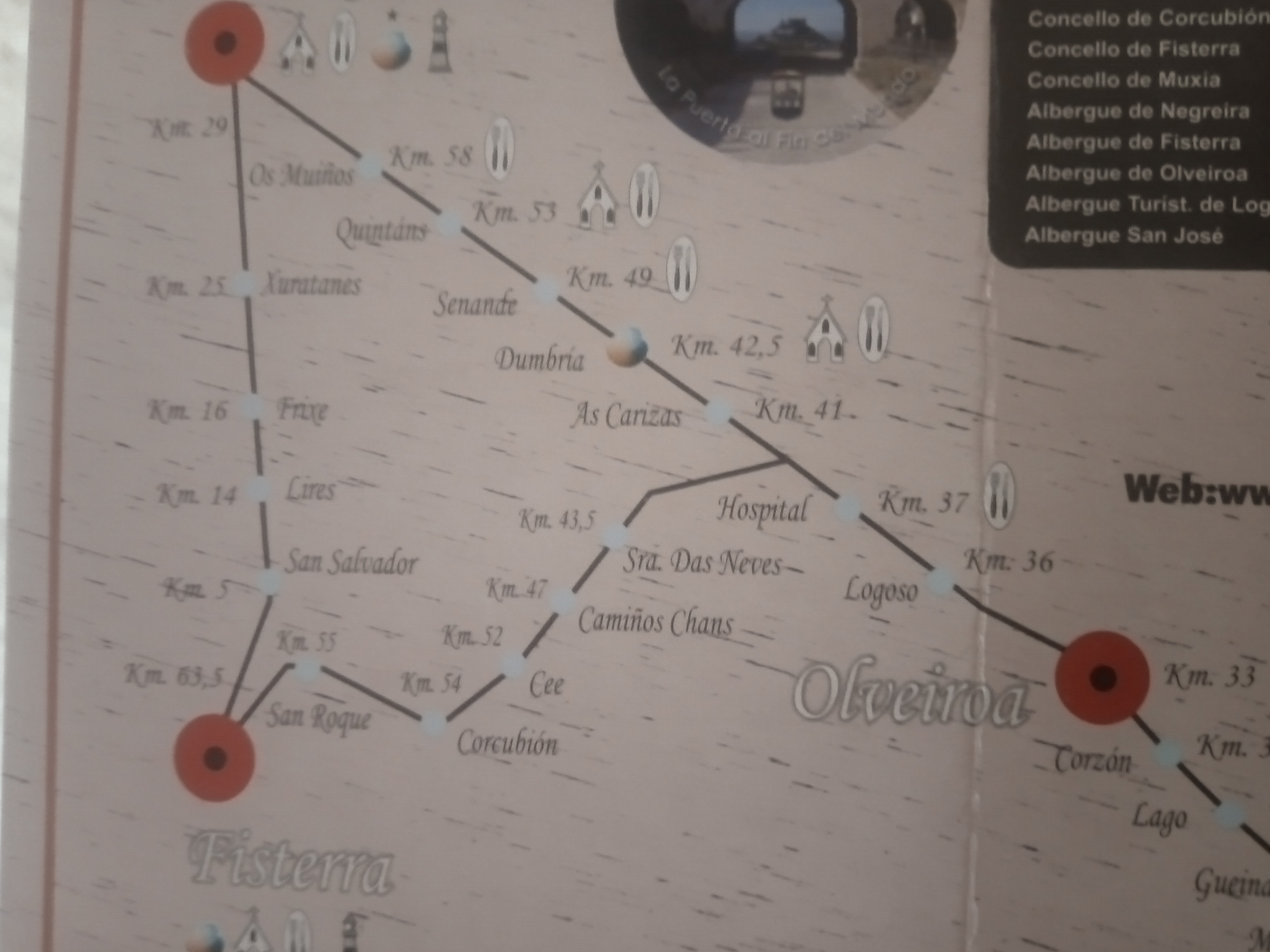Deze korte Camino is de enige pelgrimsroute die in Santiago de Compostella begint. Finisterre wat letterlijk het einde van de wereld in het Latijn betekent was de plaats waar de apostel Jacobus voor het eerst voet aan land zou hebben gezet op het Iberische schiereiland. Door de eeuwen heen was het dan ook gebruikelijk voor vele pelgrims om na een korte rustpauze in Santiago de Compostella de tocht te hervatten, om ook deze mythische plek te bezoeken. Hier aangekomen verbranden ze dan vaak ritueel hun kleren een traditie die ook vandaag de dag nog levendig is. Niet verwonderlijk als je bedenkt hoe sommige pelgrims stinken, dat krijg je er eenvoudigweg nooit meer uit.