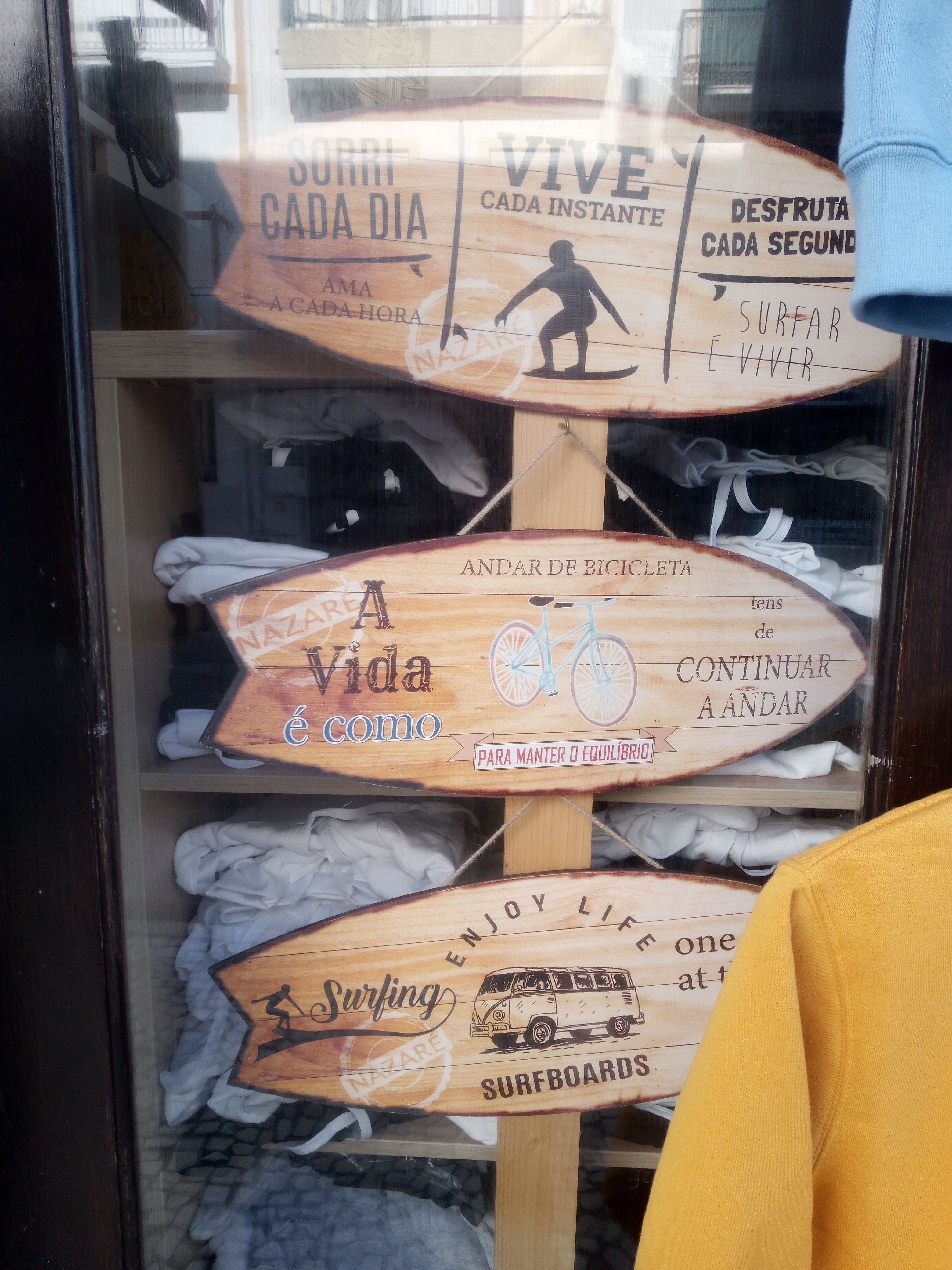 Dag drie trek ik de schone kleren aan. Laatste dag in Nazare, ik moet de golven een keer aanschouwen. Punt is dat Nazare in een baai ligt en eventuele golven zie je vanaf de kliffen die de zee inlopen en de baai scheiden van de volgende. Het is zeker 500 treden klimmen. En daar gaat meteen weer het concept rust en afkicken. Op het eiland Santorini in Griekenland mishandelen ze ezels door Amerikanen van hun luxe cruiseschepen omhoog te laten slepen. Ik strompel liever zelf. Heel traag.