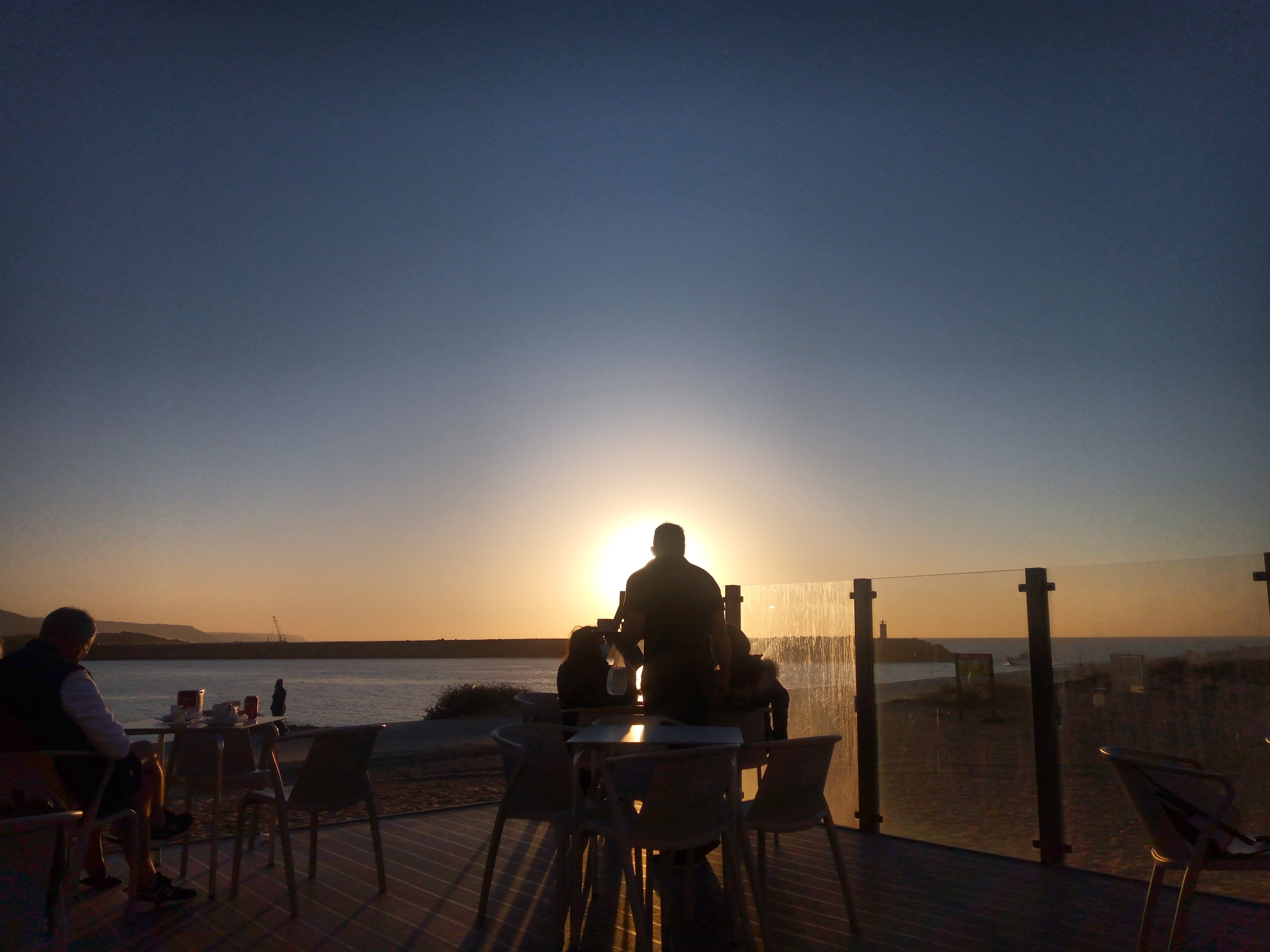 Bovenop de kliffen een koffie om het concept rust levendig te houden. De Duitse merkt me op en sluit aan. We delen ervaringen en zij deelt een aantal gedroogde visjes die ze op de markt kreeg toegestopt door een oudere dame. Ik peuzel op de terugweg op de gezouten stukken. Een dag later heb ik daar gruwelijk spijt van als ik met mondkap in de bus naar Lissabon zit. Ik kan uren nagenieten van de bijzonder sterke odeur van gedroogde vissen. Mjammie!