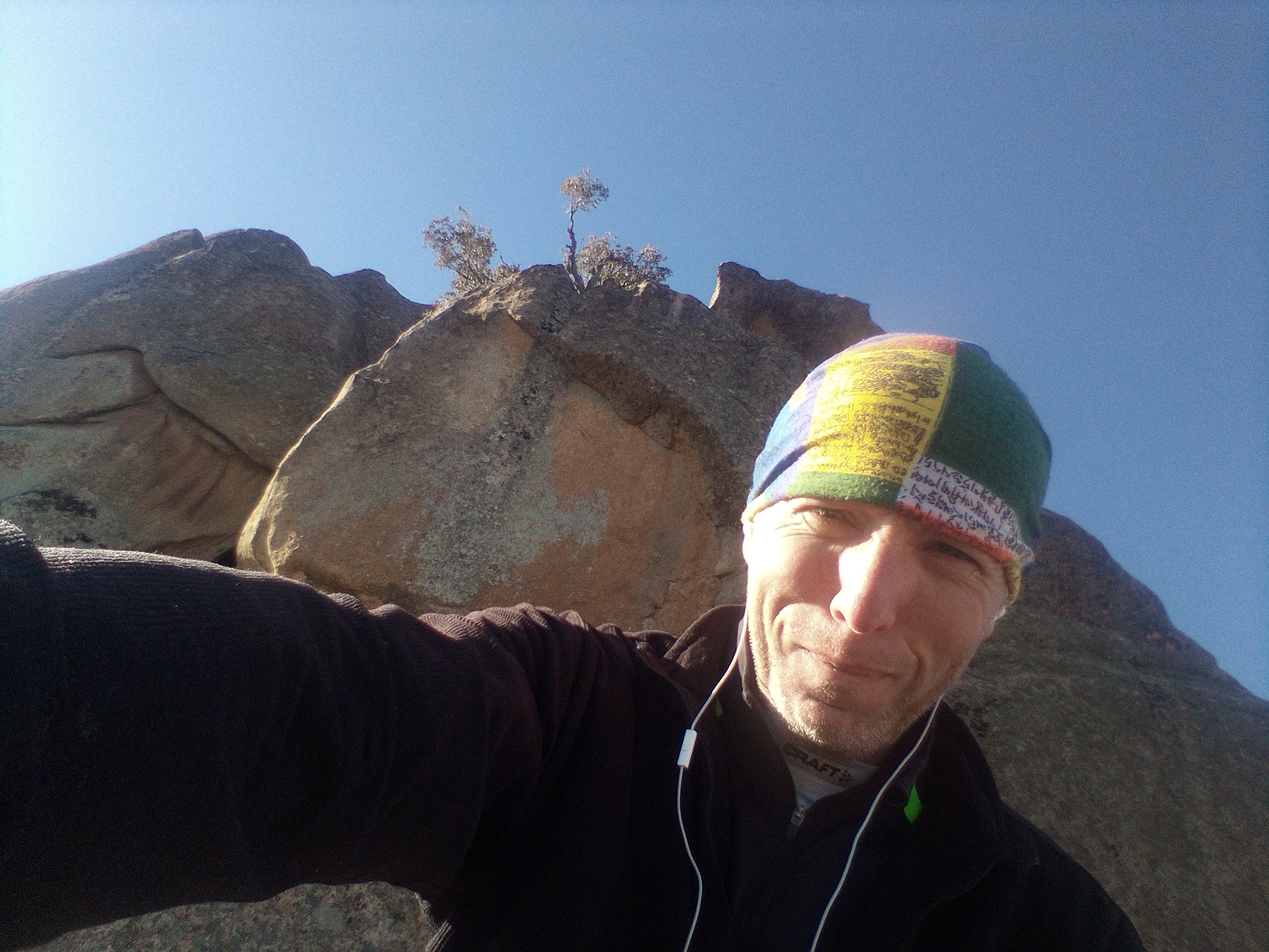 Ik klauter via complexe rotspartijen met handen en voeten verder. Overal de omgewoelde stukken grasland die duiden op de aanwezigheid van (grote) zwijnen. Ik merk dat eerst één oortje van de iPod uitgaat, dan de andere en dan begin ik hard te fluiten en zingen. Geen idee wat hier rondloopt. Het is adembenemend stil en ik wil geen beestjes verrassen. Boven me cirkelen gieren in een groep alsom te zeggen: Het gaat niet lang meer duren.