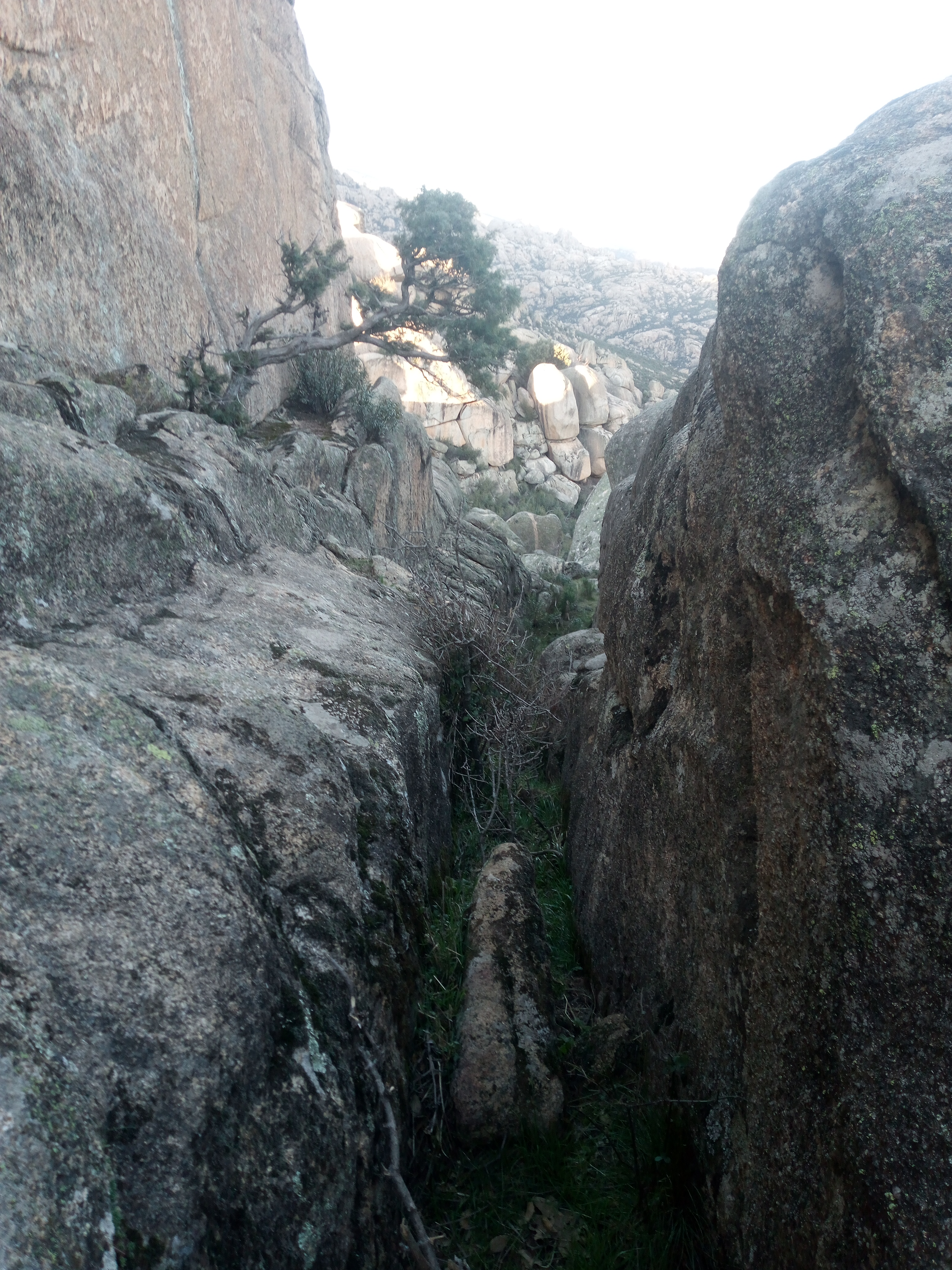 Ik zwier over single tracks en alsjeblieft beter wist, zou je zeggen dat ik opgewonden was. De wolken hangen over de hogere kammen en zo nu en dan zie ik dat het daar sneeuw brengt. Ik maak een ronde door Pedriza anterior en daarna de Pedriza posterior, ofwel het dieper gelegen gebied dat volledig omringd is door hoge kammen.