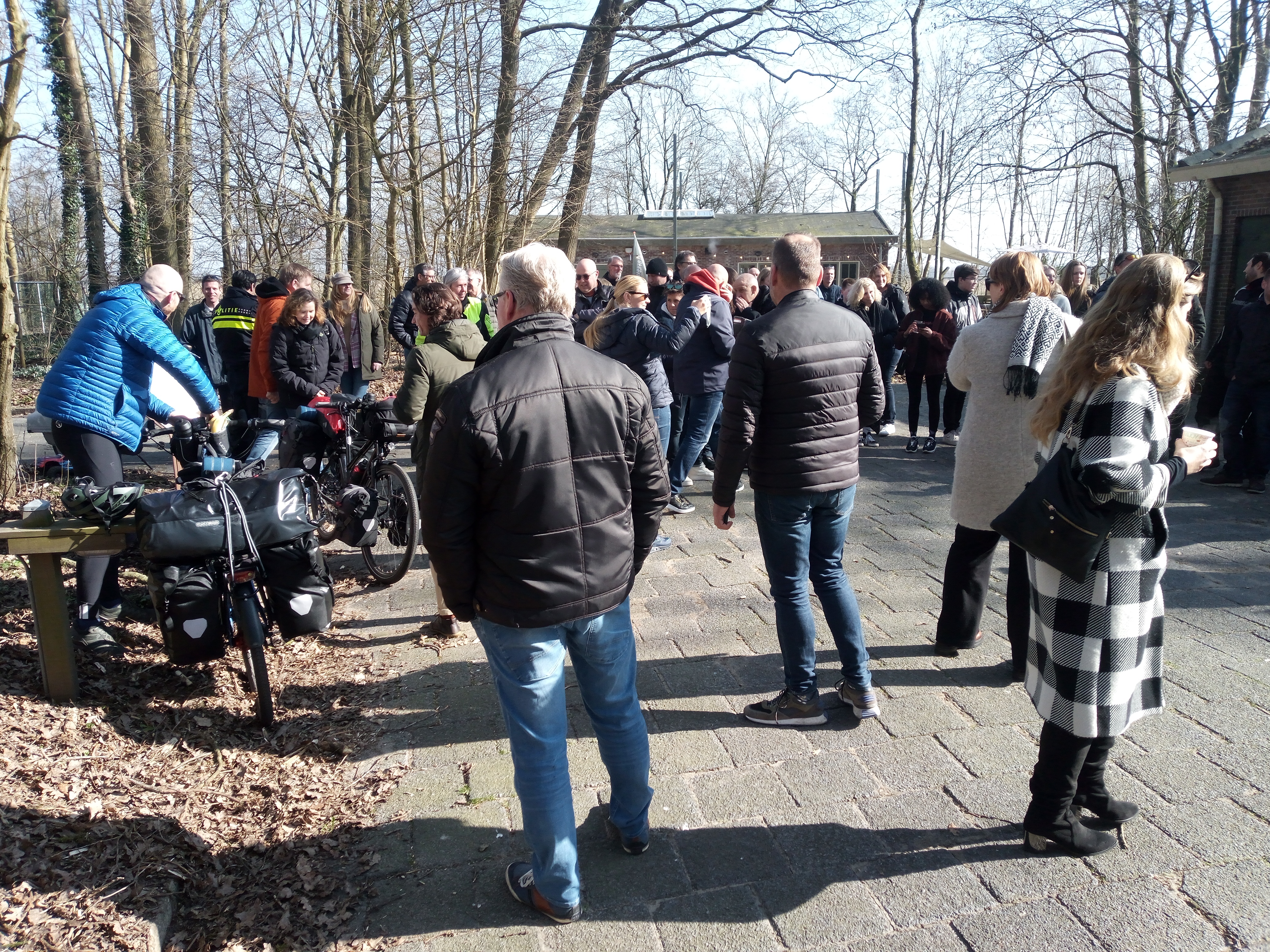 Ik reis met haar mee en bivakkeer een nacht in Uitgeest. Vroeg op en door naar Fort Uitermeer bij Weesp waar een vriend samen met vriendin op de fiets stapt om ten overstaande van honderd mensen te vertrekken voor een fietswereldreis van onbepaalde duur. Zij werkt bij de forensische recherche en aldus staan bij vertrek vier politiebussen met loeiende alarmen. Kippenvel. Bij mij. Hoe moet dat voor hen zijn? Na zoveel maanden voorbereiding treden ze het avontuur tegemoet. Ik ken het gevoel van de droom die je gaat realiseren en die jou overneemt. Dit vertrek vergeten ze nooit meer… Ik ben één van het selecte gezelschap dat het eerste stuk meefietst. Op een OV-fiets. Met kollosale rugzak.