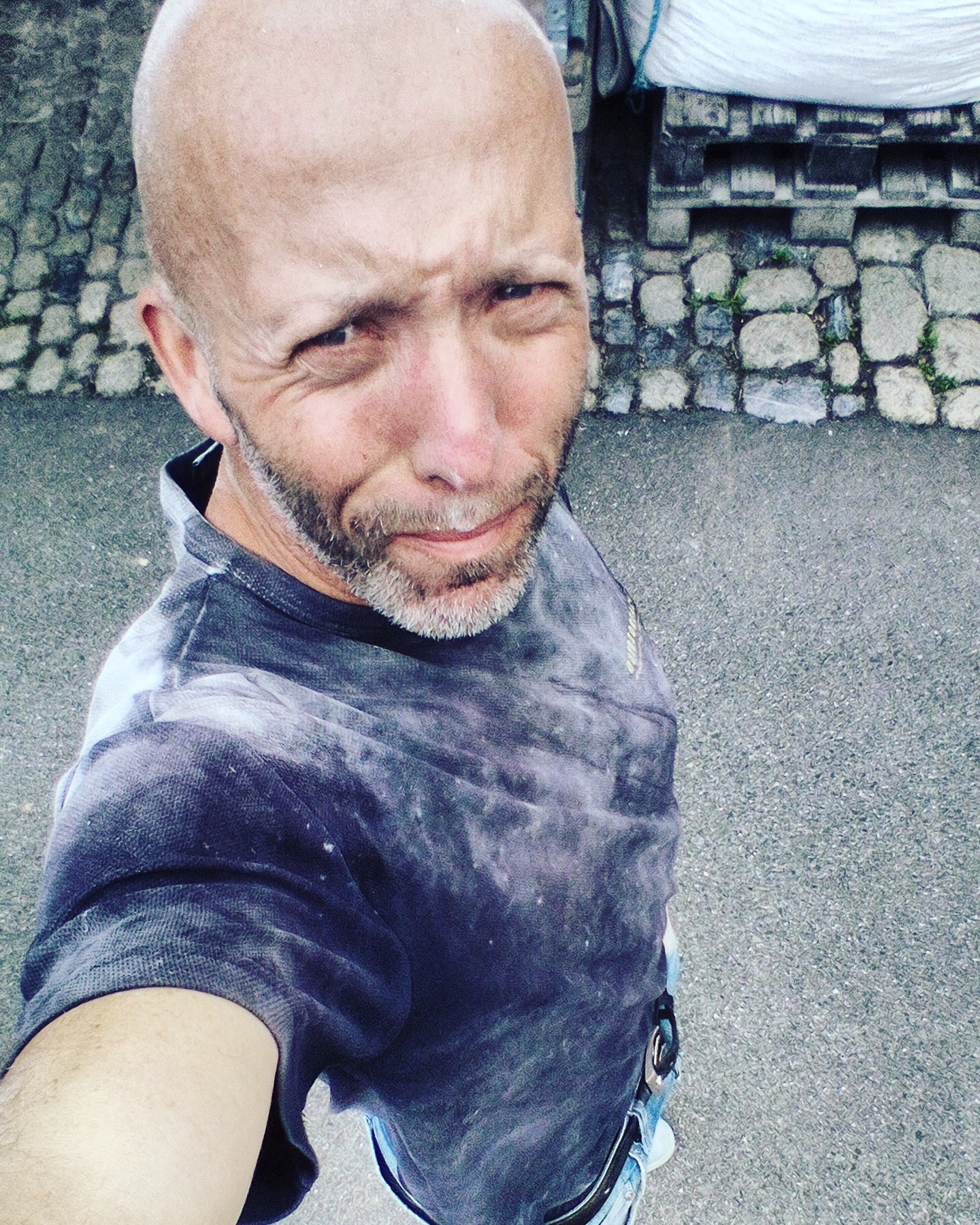 Einde dag ben ik een uitgeknepen dweil. Te weinig gedronken (stromend water alleen in de kelder verkrijgbaar) en ik ben leeggezweet. Edoch de vloer is vernietigd en waar eens een muur was, is nu licht. En ik zag dat het goed was en voelde me een heilige.