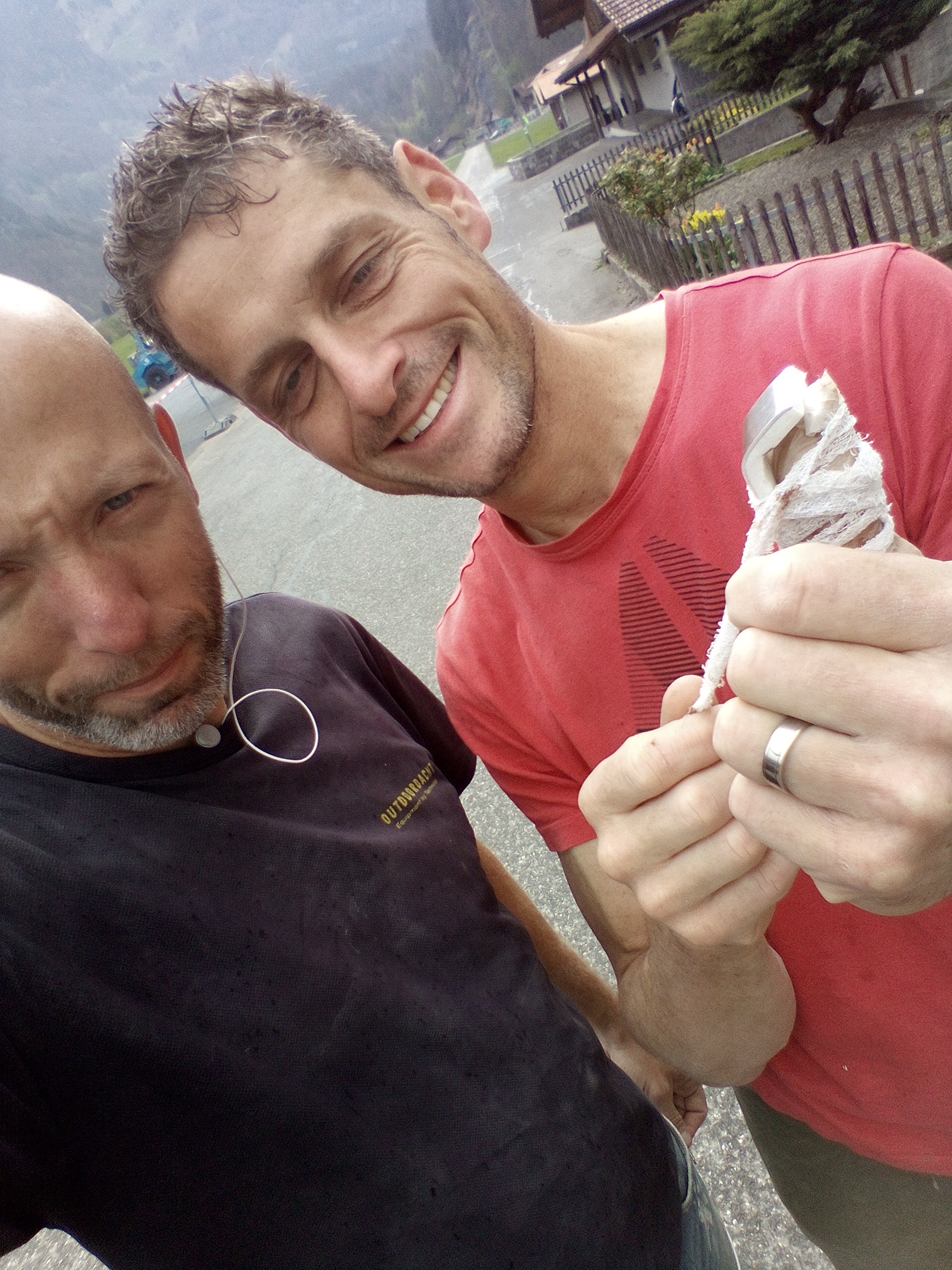 Aldus vertrekt Maarten met de duim met zijn brakke hond naar het kluspand. Als we uitstappen wil ik meteen een selfie met de duim, een ware ravage. Door het verband is de huid wit en week en zijn vinger heeft toch echt iets weg van een gesmolten ET.