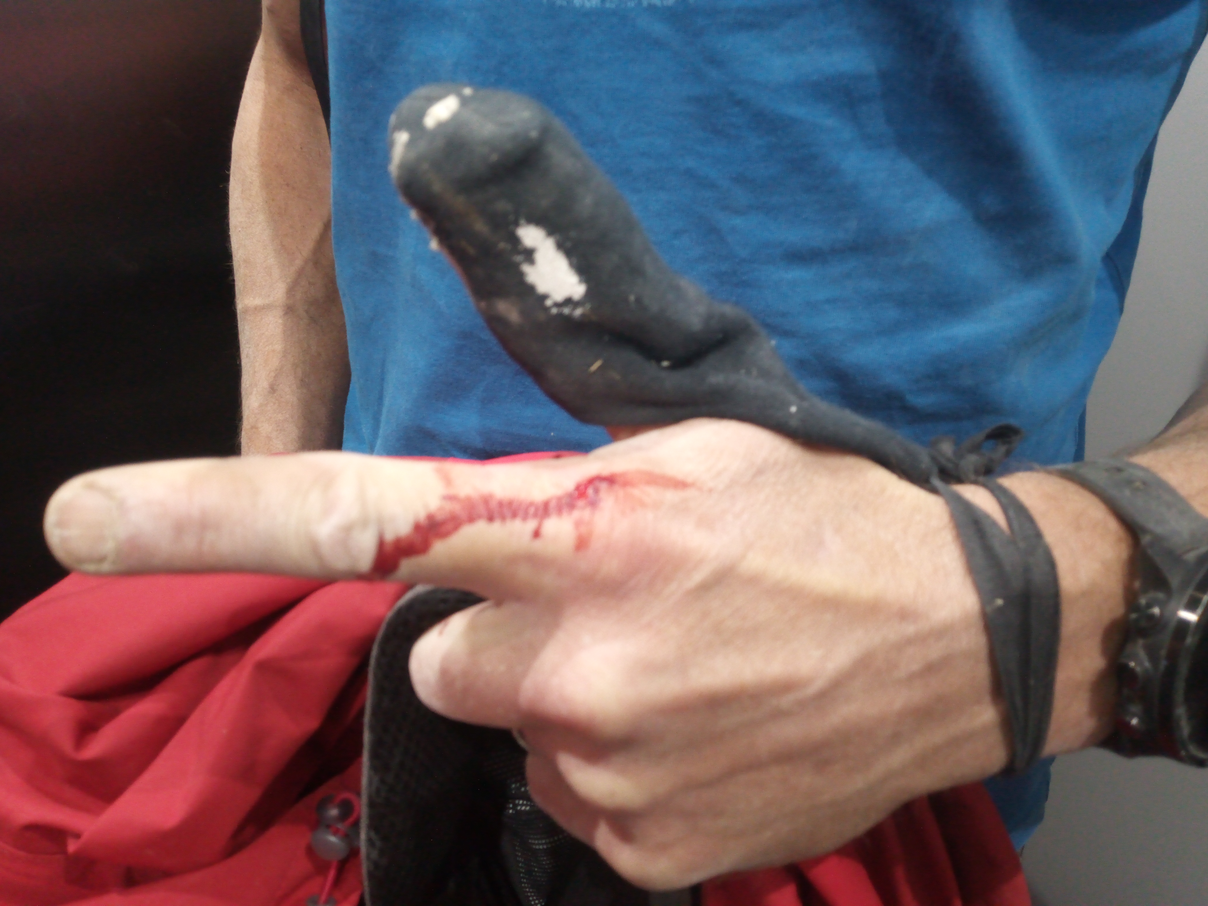 Maarten één heeft naast zijn duim nu een bloedende wijsvinger, hij is goed bezig. Bij mij is het de middelvinger; we zijn bloedbroeders.
