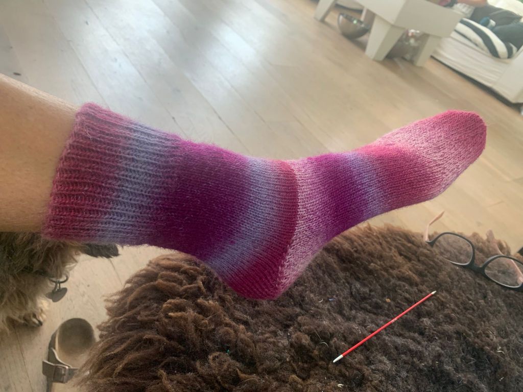Tijdens het liften een lieve app. Één van mijn breisters heeft weer sokken voor me gebreid net als tijdens de laatste tocht. Ook heeft mijn lieve trailmama Elly weer een mooie zwarte beanie voor me gemaakt die ik meetors op de rug voor de koude nachten. Ik bof maar.